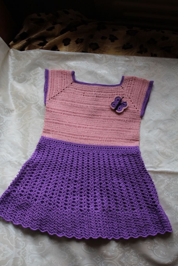 Вот такое платьишко я связала в первый раз для внучки. Причем до этого вязала только спицами. С крючком никак не могла подружиться.