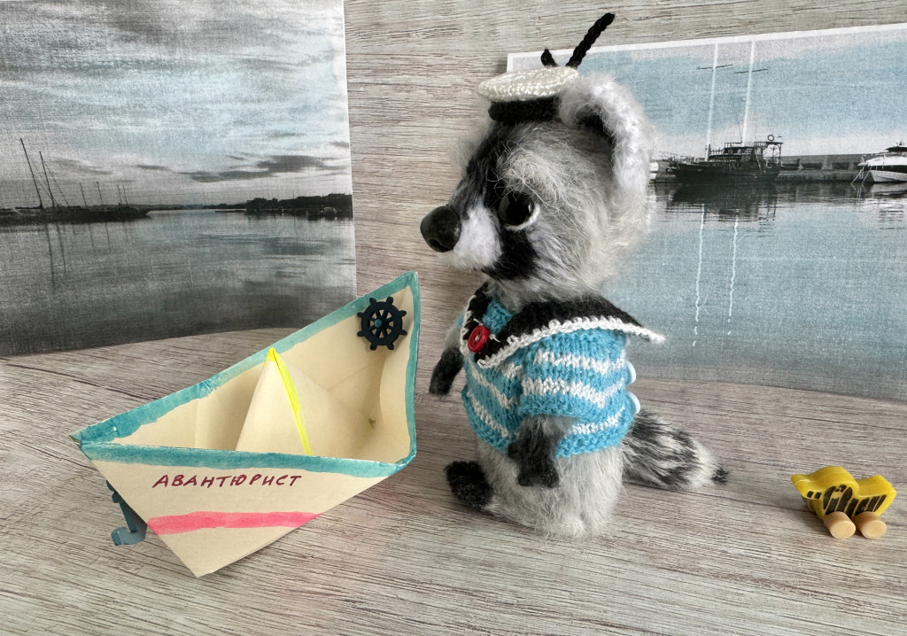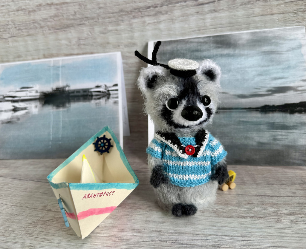 Мистер Енот, в котелкеи шарфе. Вязался тяжеловато, но результат порадовал. Платный МК IRIS_TOYS .