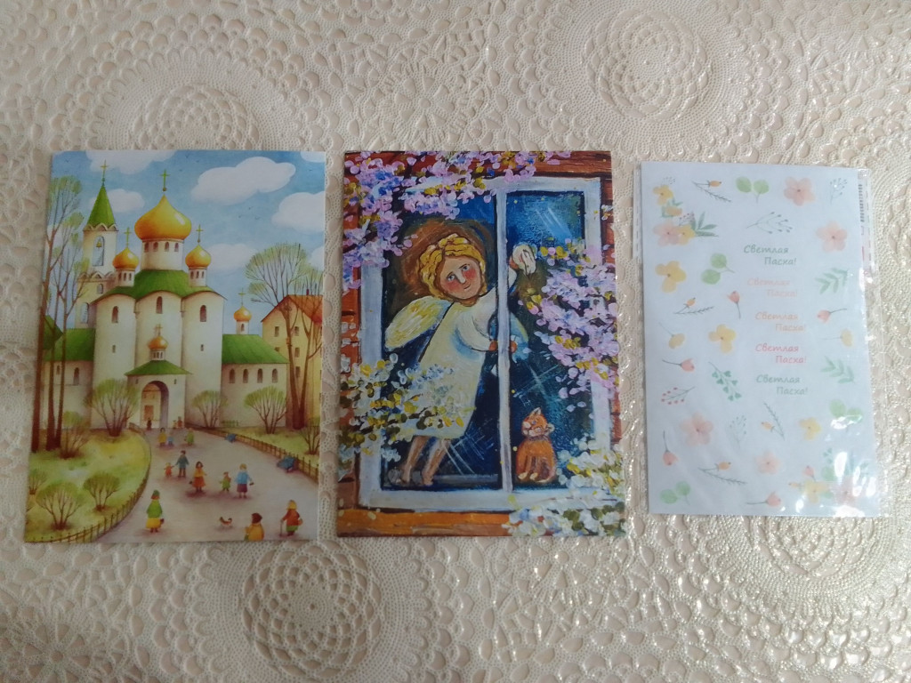 От Машеньки @Мокрый дождь на букву М маяк, открыточка с храмом и это не просто храм а любимого святого Георгия Победоносца...вот как вышло славно.., и ещё две сюрпризные открыточки и наклеечки :adore: