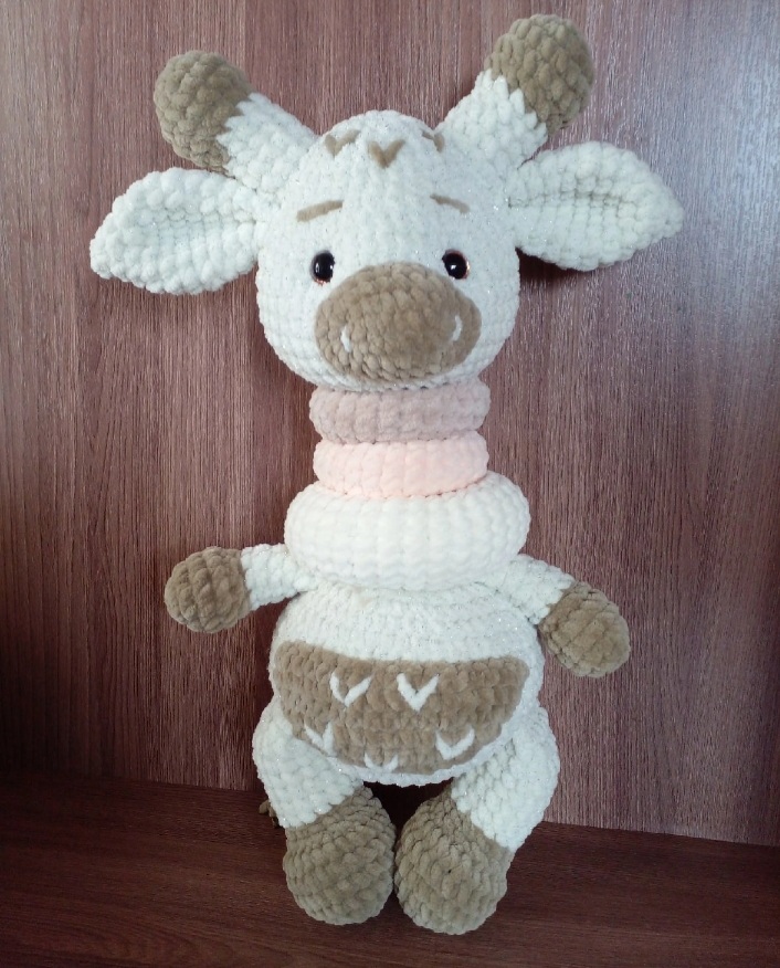 Жирафик. Связан из мулине. Рост 4 см. Пятнышки акрил. 😊