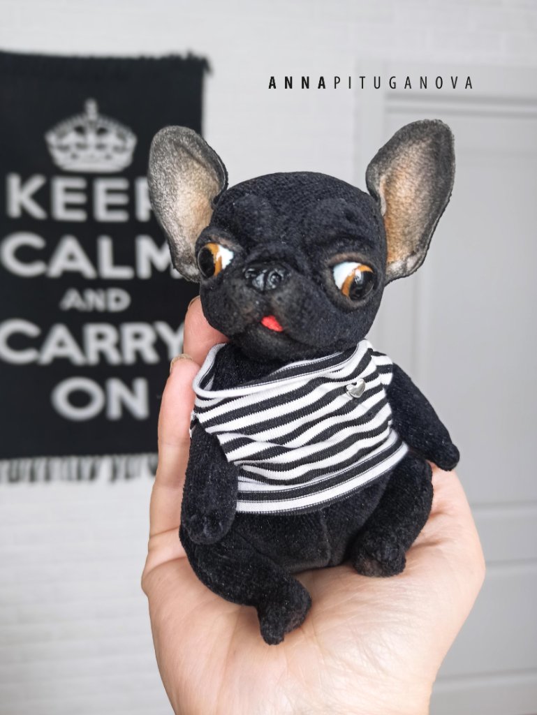 До увлечения вязанием игрушек, я шила игрушки в стиле тедди. Щенок французский бульдожка