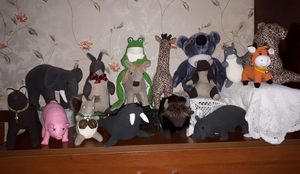 В период пандемии в 2020 году сшила целый текстильный зоопарк. Здесь только часть зоопарка