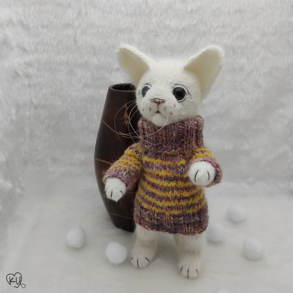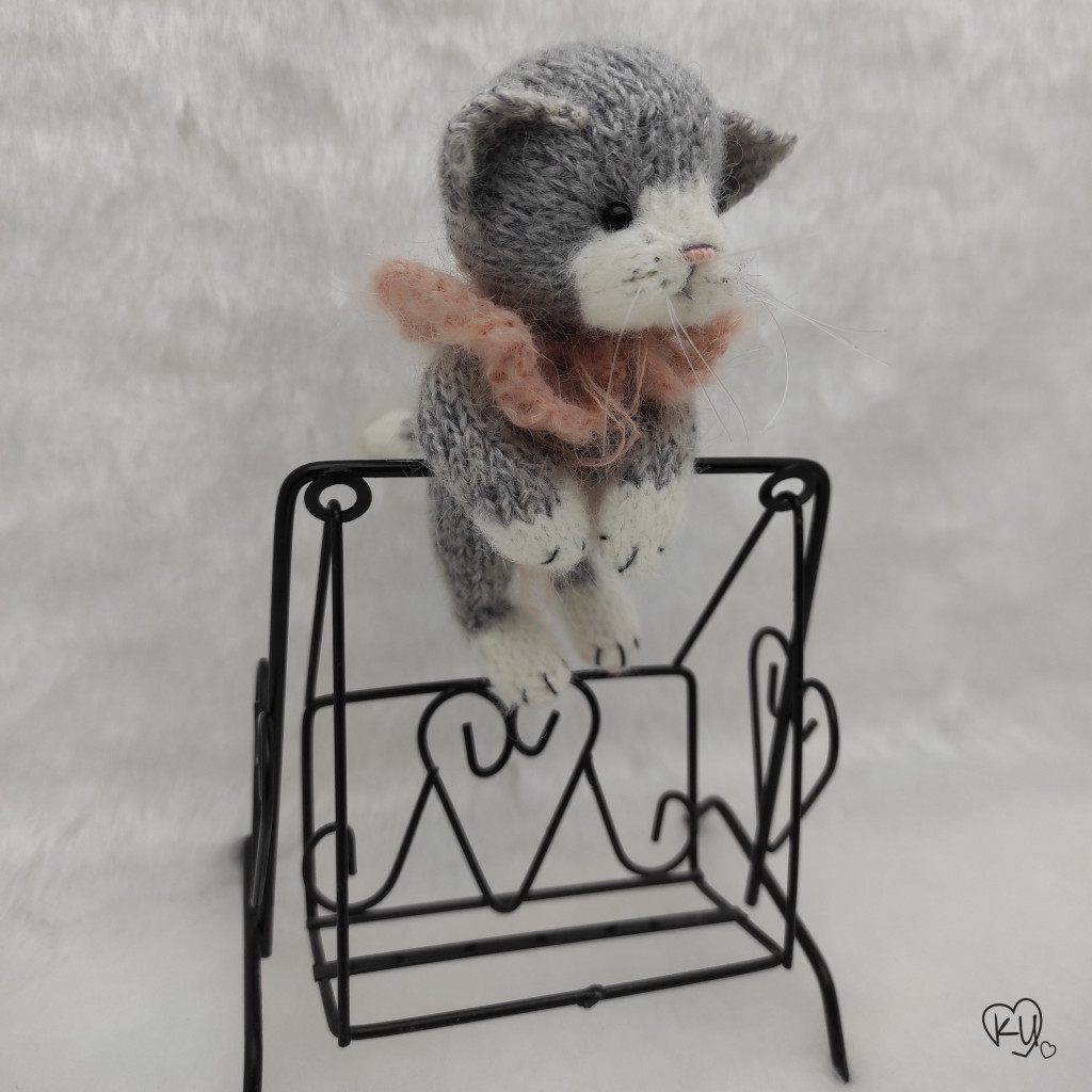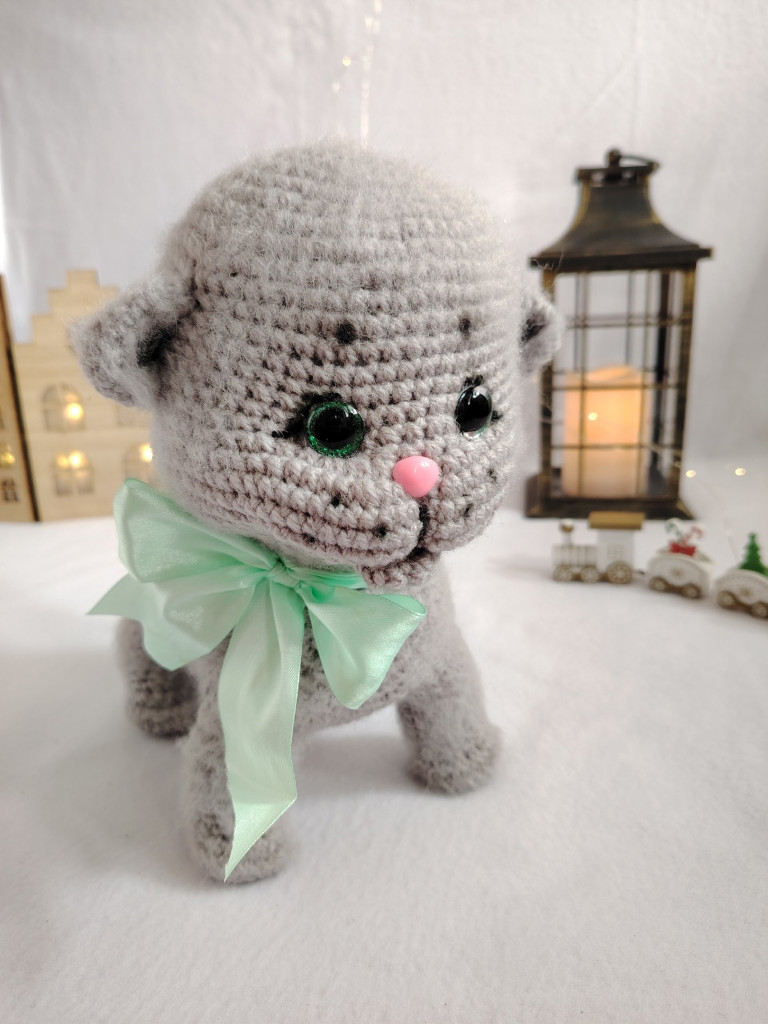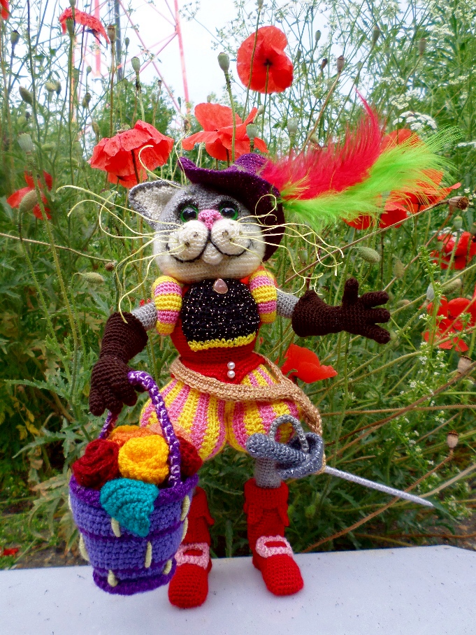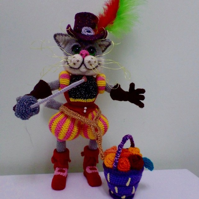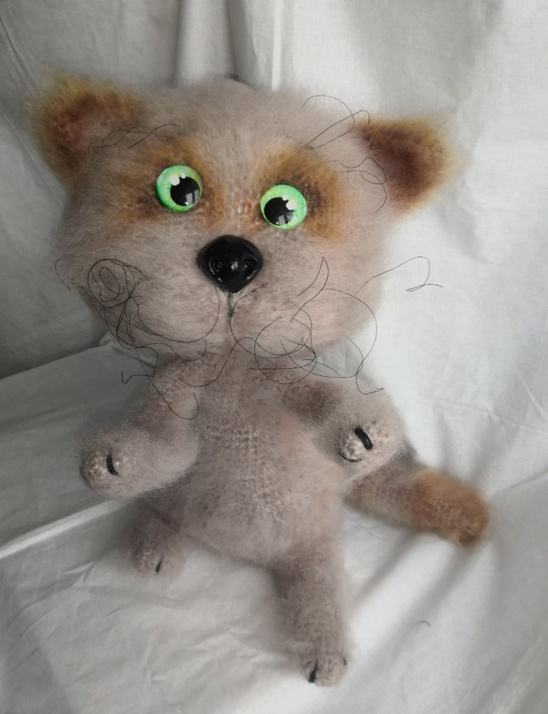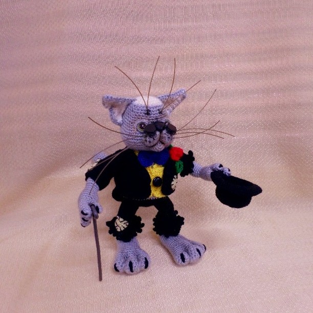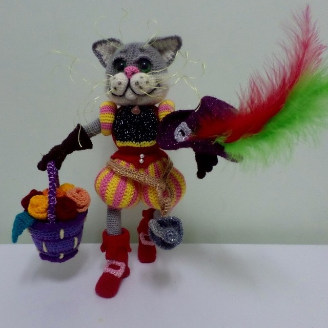 Кошка связана по МК китайского мастера. Полностью на проволочном каркасе.