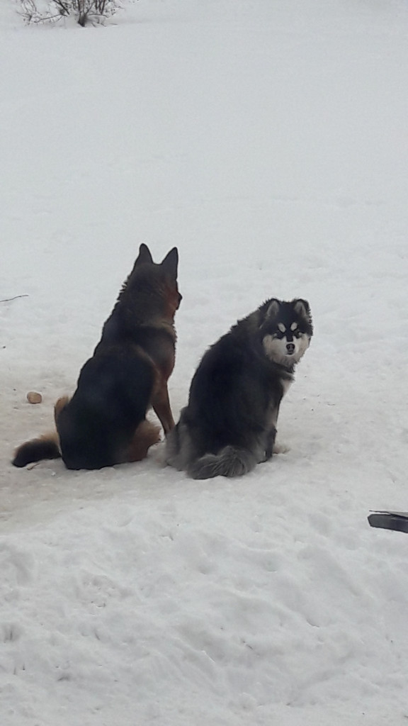 У меня 3 собаки - два аляскинских маламута и один цвергшнауцер. Маламуту мальчику 10,5 лет, маламуту девочке 9 лет, а шнауцеру 7 лет.