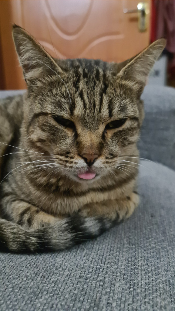 Наша любимая Бусинка, очень любит спать на подушке, в этот раз в роли подушки губка.