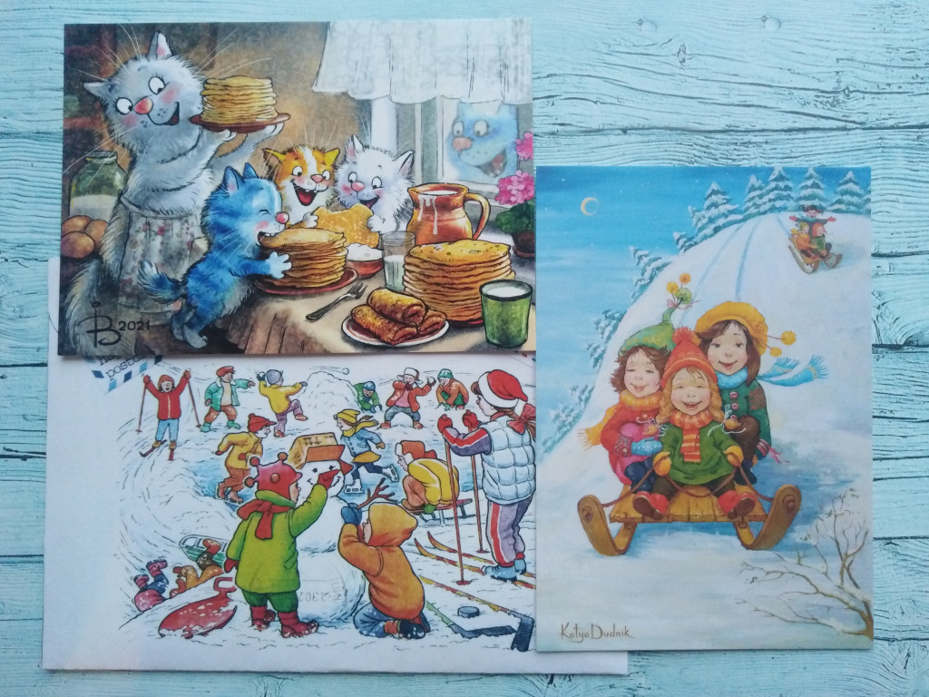 @totoshka Наташа, твой конвертик добрался до меня! Спасибо огромное, за чудесные открытки, детвора на санках и синие коты :adore:
