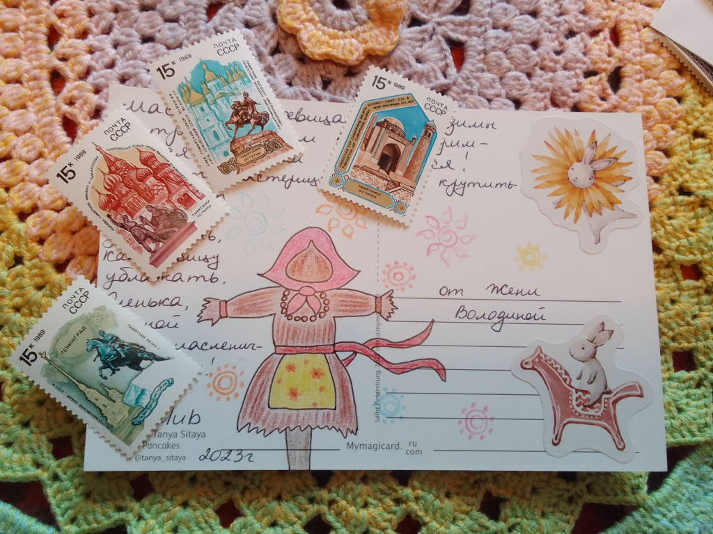 Женя, @ЖеняВолодина прилетел твой чудесный конвертик, такая красота, такое оформление замечательное и марочки в мою коллекцию, благодарю дорогая, открыточка очень классная!!! Тоже считаю что Масленица лучшее зимнее развлечение :party: