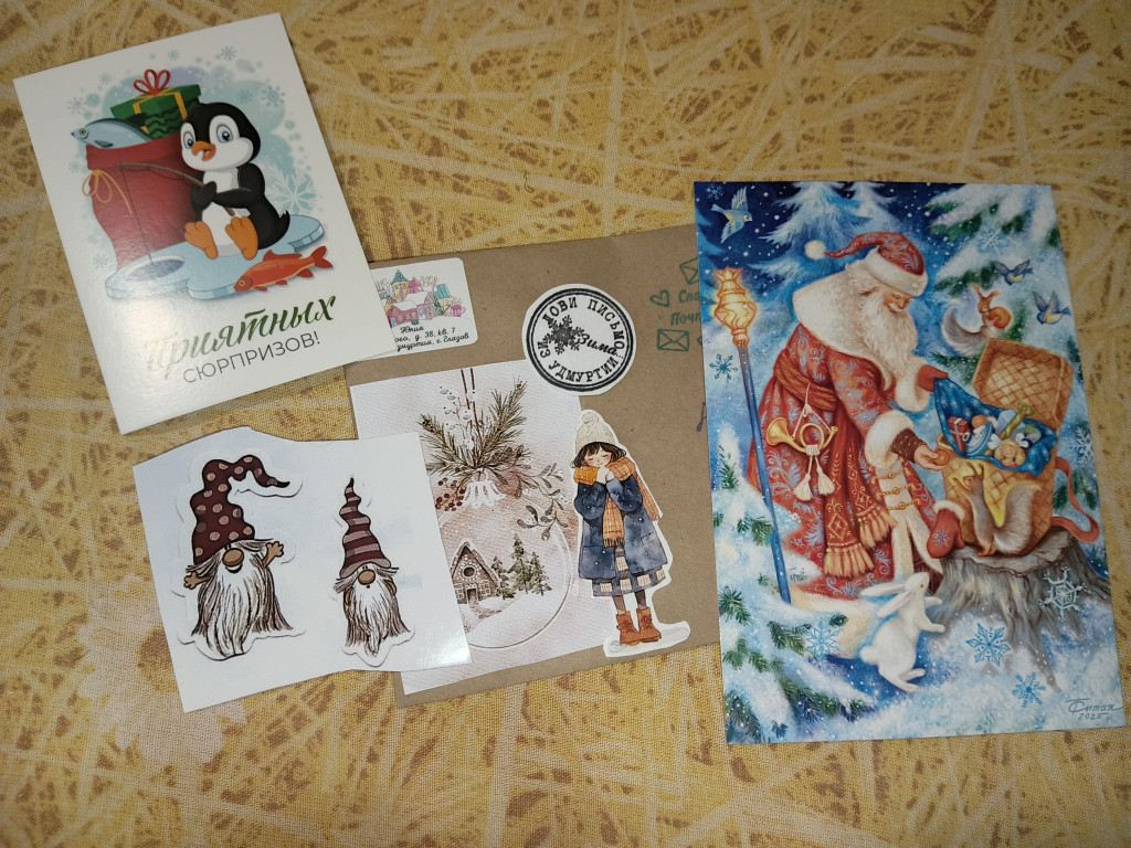 Первые три конверта отправила без них, подвела доставка, а последующие, надеюсь получат тайное пожелание