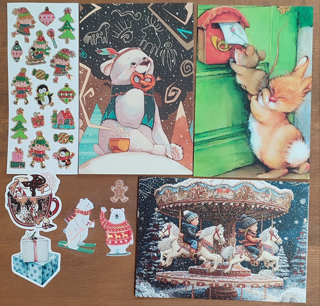 От Надюши @n-maks1965 по новогоднему обмену с поздравлениями и сюрпризами, магнитиком. От Людочки @MilaN такие милые открытки с душевным поздравлением. Девочки, спасибо Вам огромное!