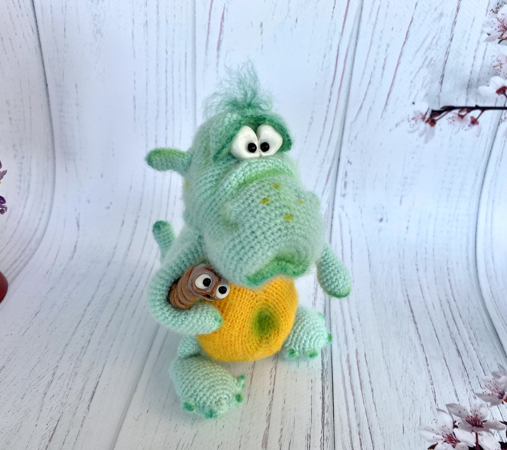 Дракончик, очень мягенький, впервые вязала из плюшевой пряжи. И брелочки.