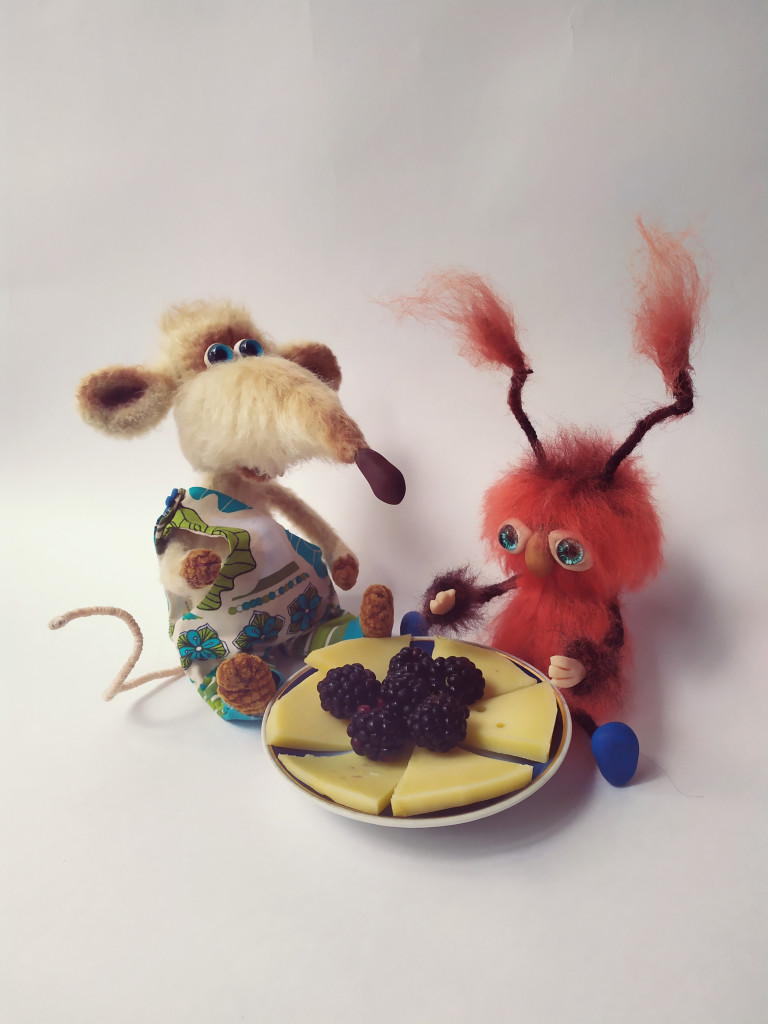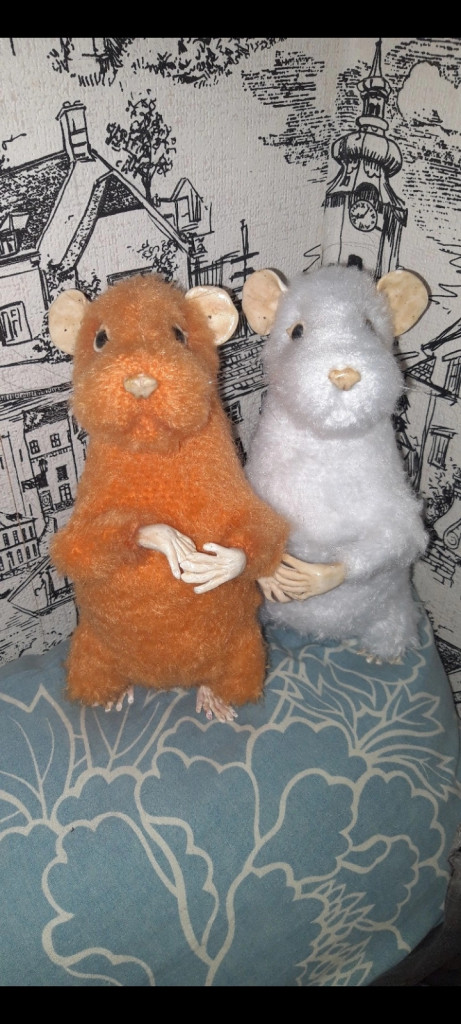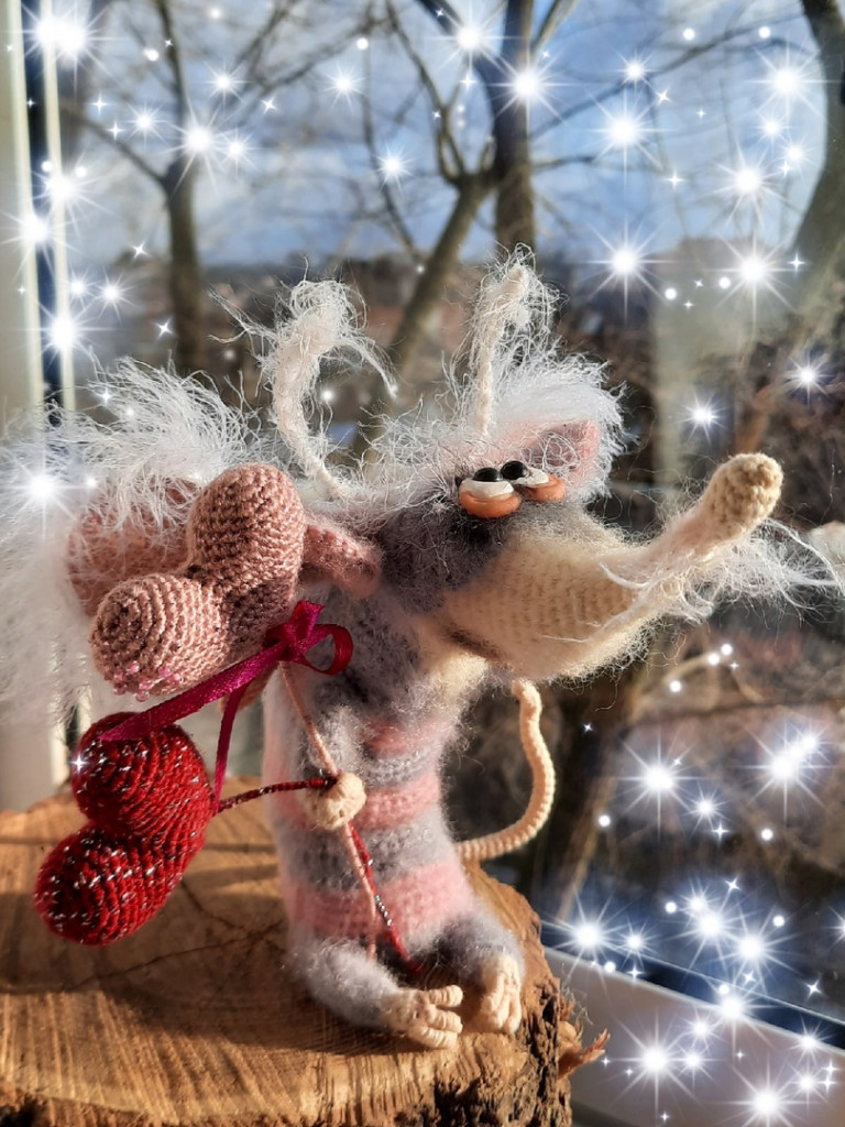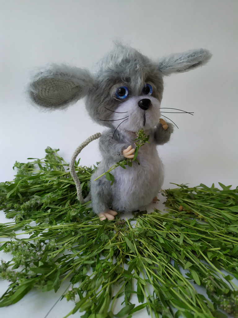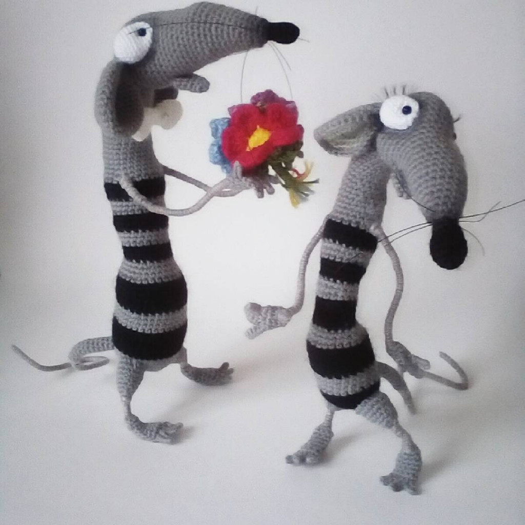 Мышки связаны крючком, на проволочном каркасе, что позволяет придавать им различные положения.