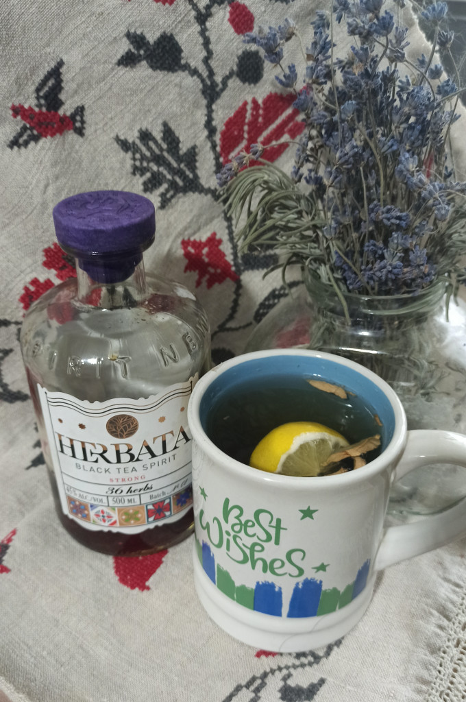 Зеленый чай+имбирь+лимон+мёд (на этот раз гречишный) + и бальзам Минского ликероводочного завода на 36 травах)))