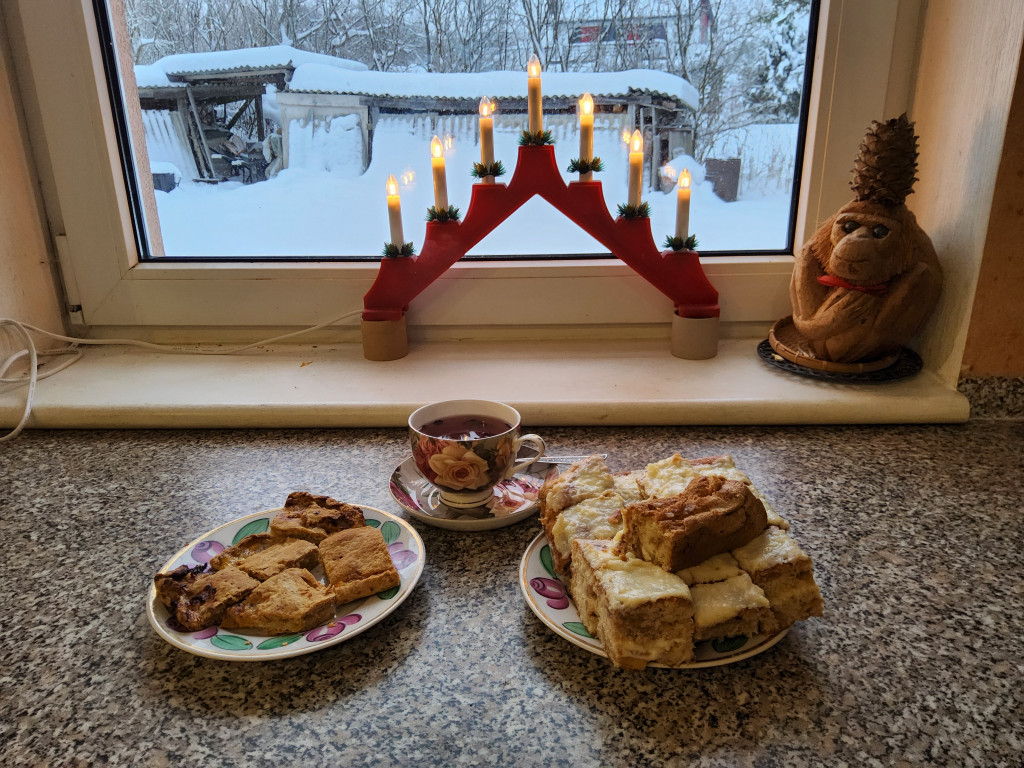 На окне свеча Адента и снег самый настоящий. Зима