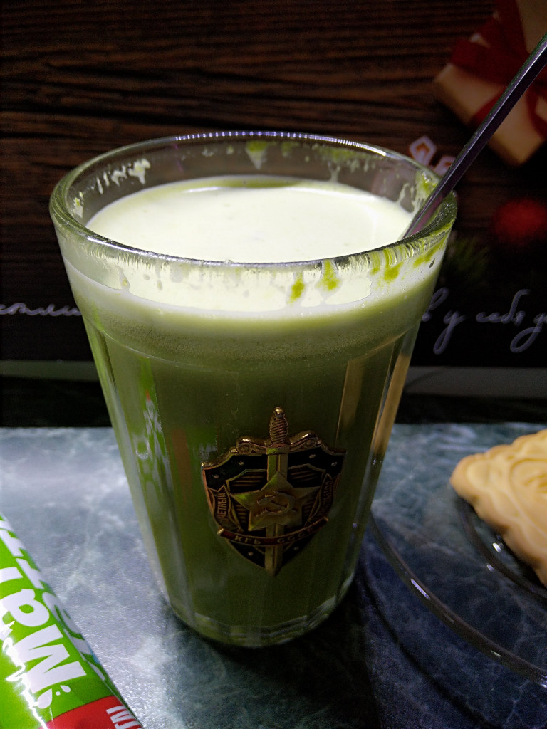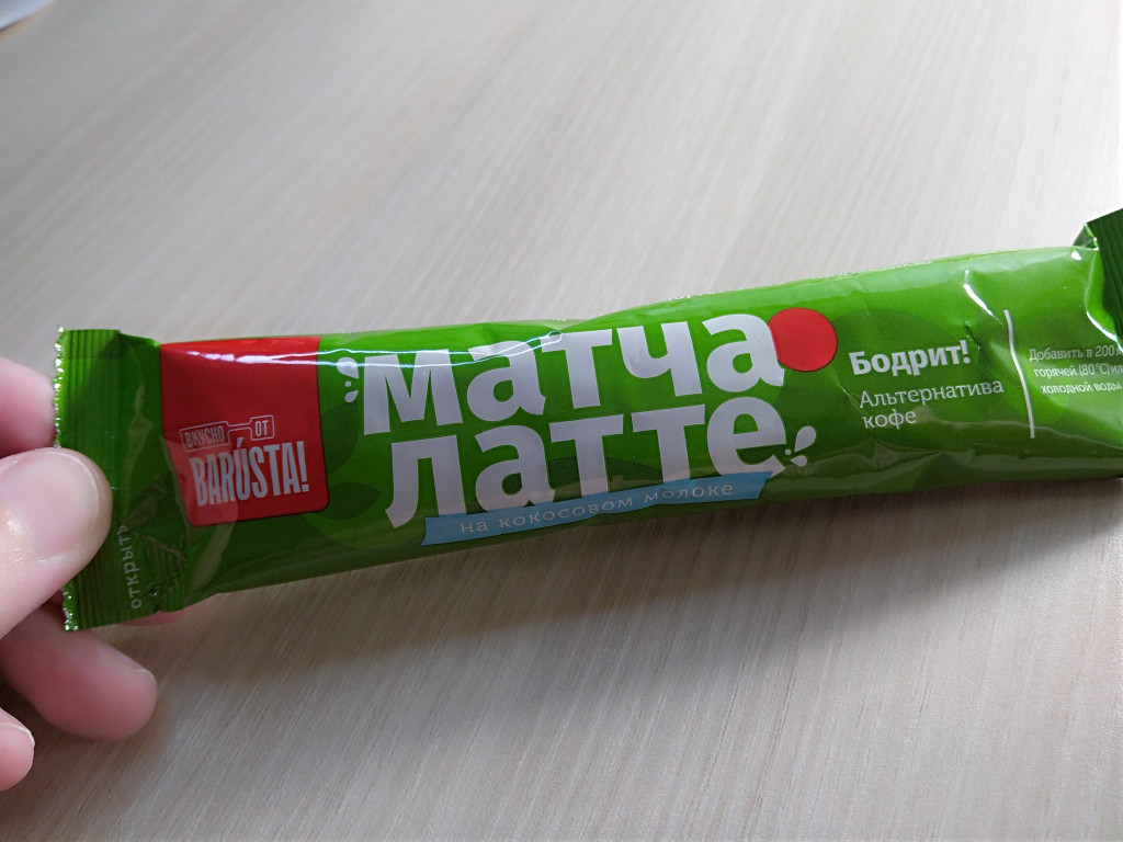 Видела его у модных блогеров, говорят бодрит не хуже кофея))), тем более у меня обед по расписанию и в обед я почти всегда пью кофе с печенькой (одной, больше нельзя((( Вкус мне понравился, чуть горчит, травяной горечью, очень хорошо чувствуется кокосовое молоко, оно есть в составе.