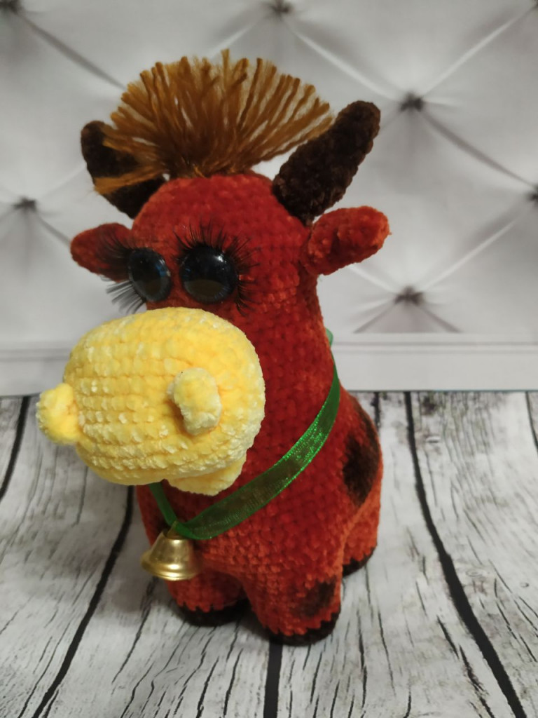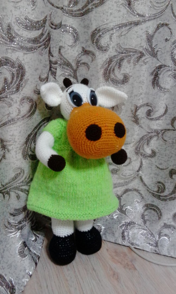 Ещё в машине бычок висит... и трёх коровок Светы Комаровой вязала, фото найти надо... (божья коровка, коровка в ёлке и снеговик-коровка)