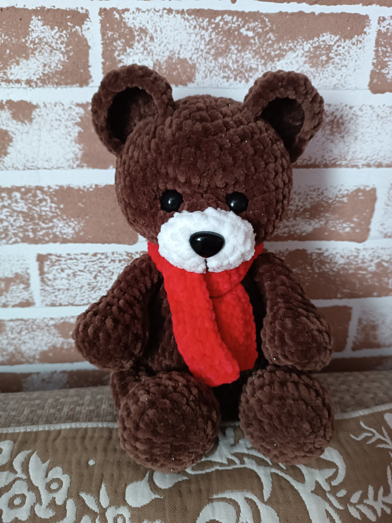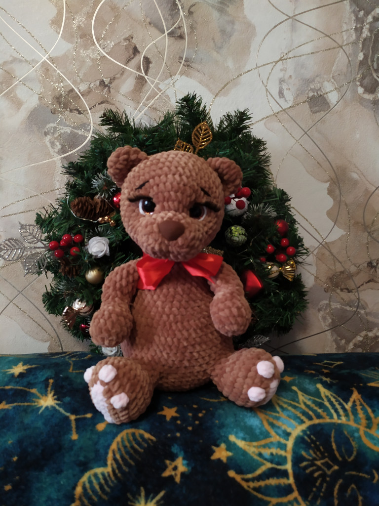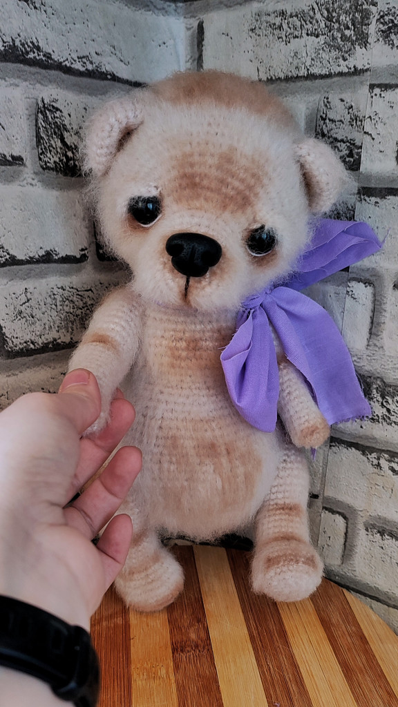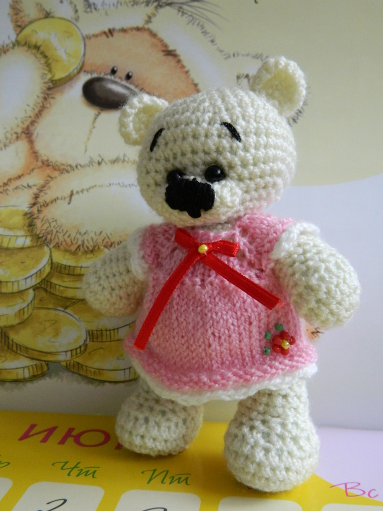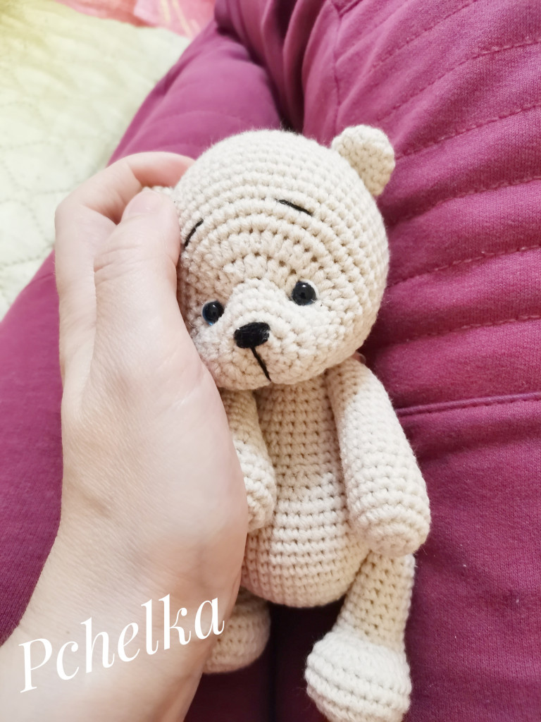 А это мой первый большой мишка, в 2 нити Реала 40. Тоже по мк Юлии Оголь