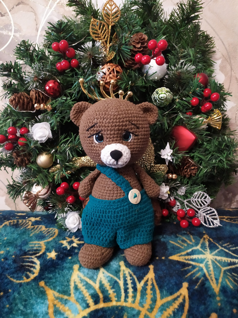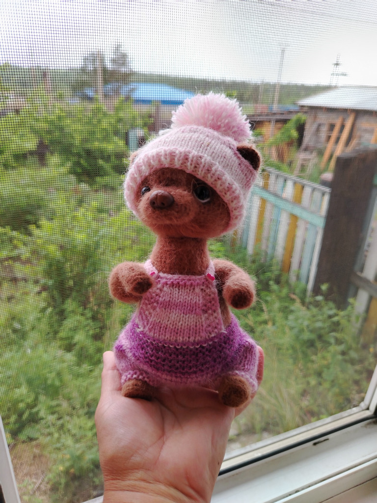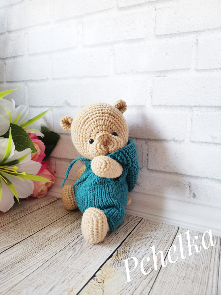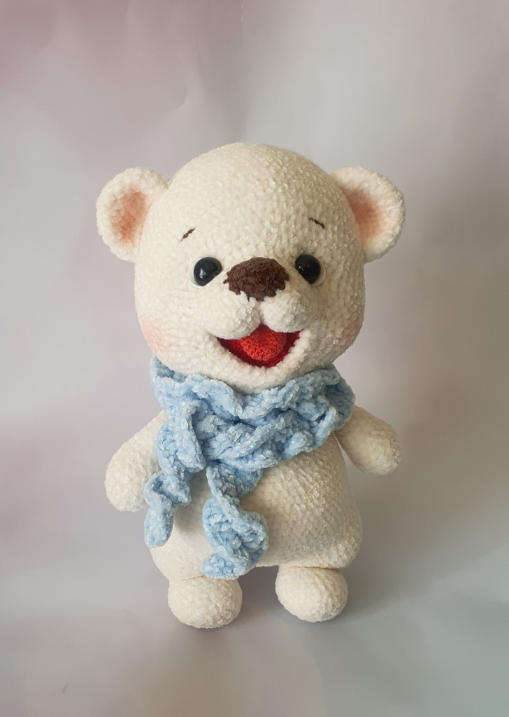 А это мой первый большой мишка, в 2 нити Реала 40. Тоже по мк Юлии Оголь