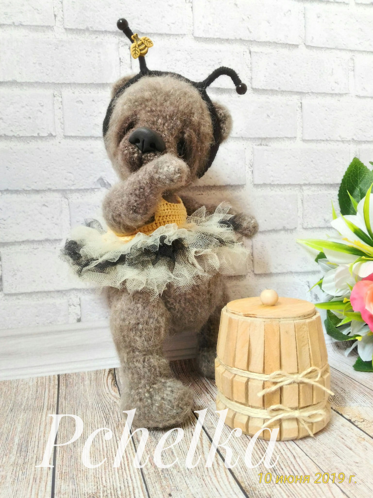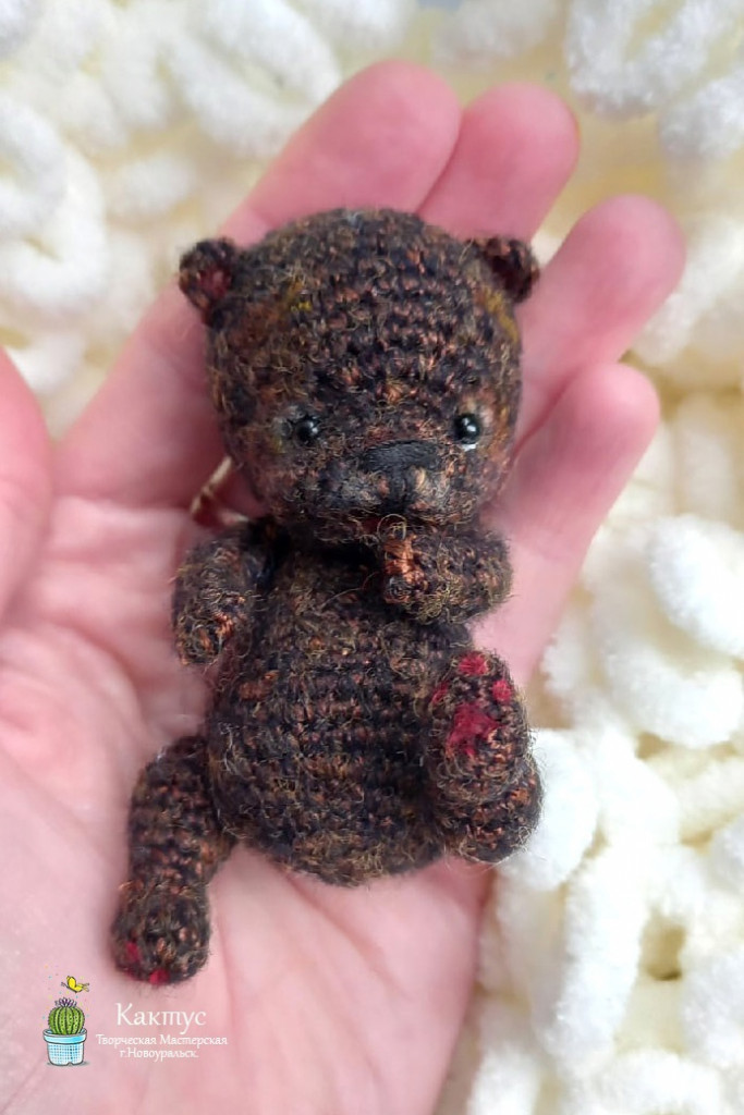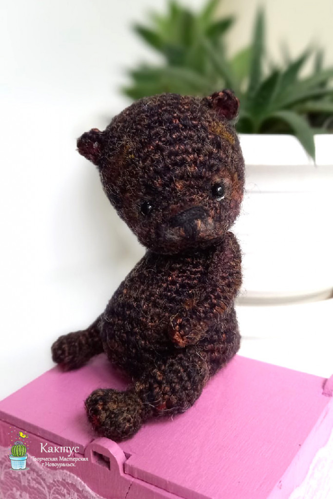 Мишка связан из пряжи Минк, 5 шплинтов, утяжелен гранулятом, тонирован маслом, рост 12 см. МК НатыТашлыковой