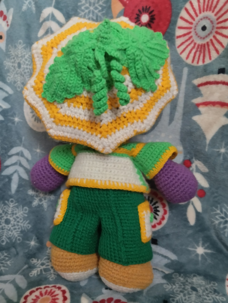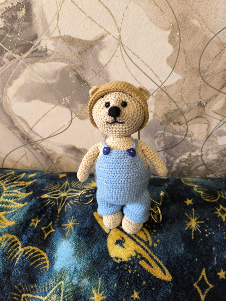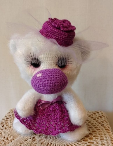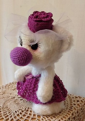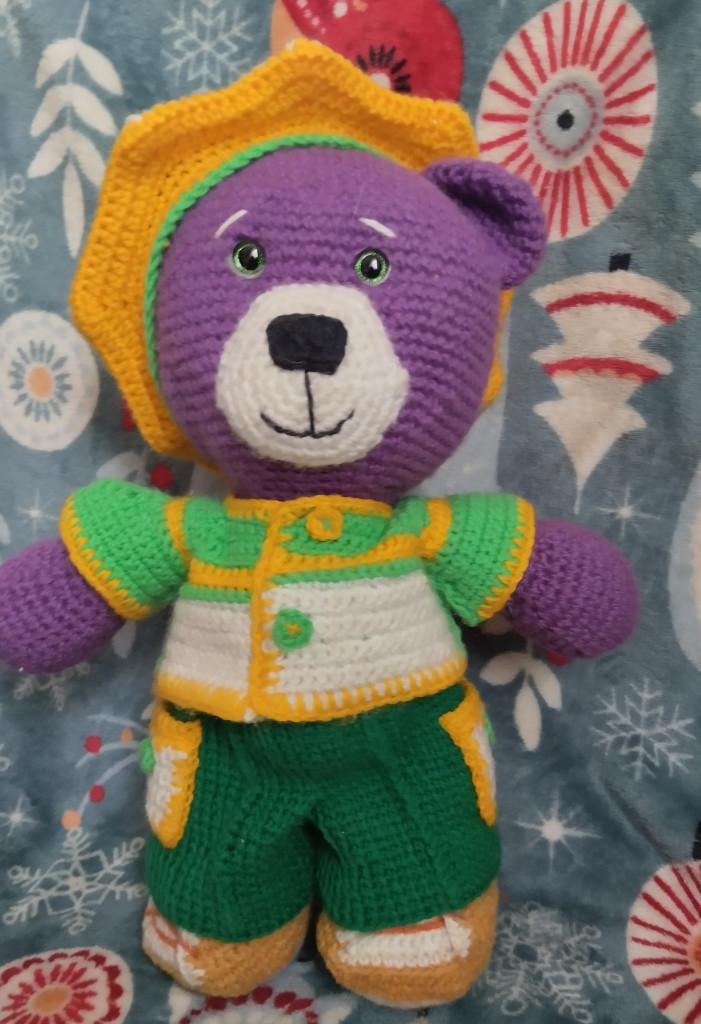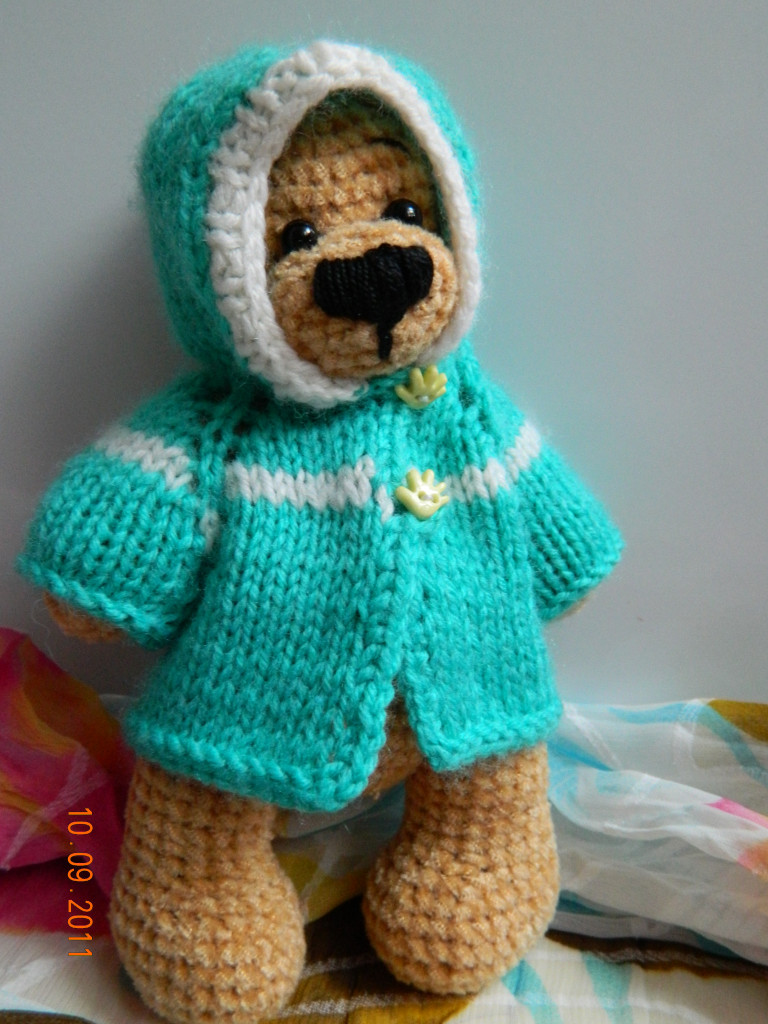 Моя вторая и потому не самая удачная игрушка. Вязала по неудачному БП мк. Поэтому что бы компенсировать связала этот комплект одежду. Дизайн и идея мои