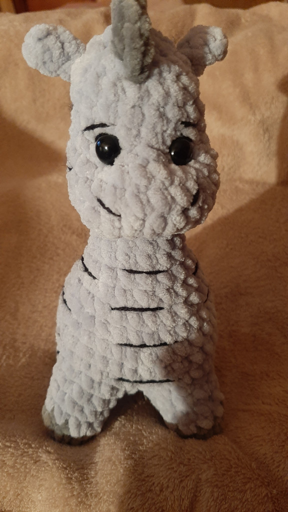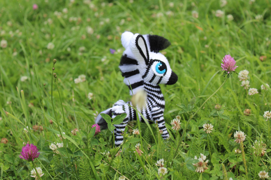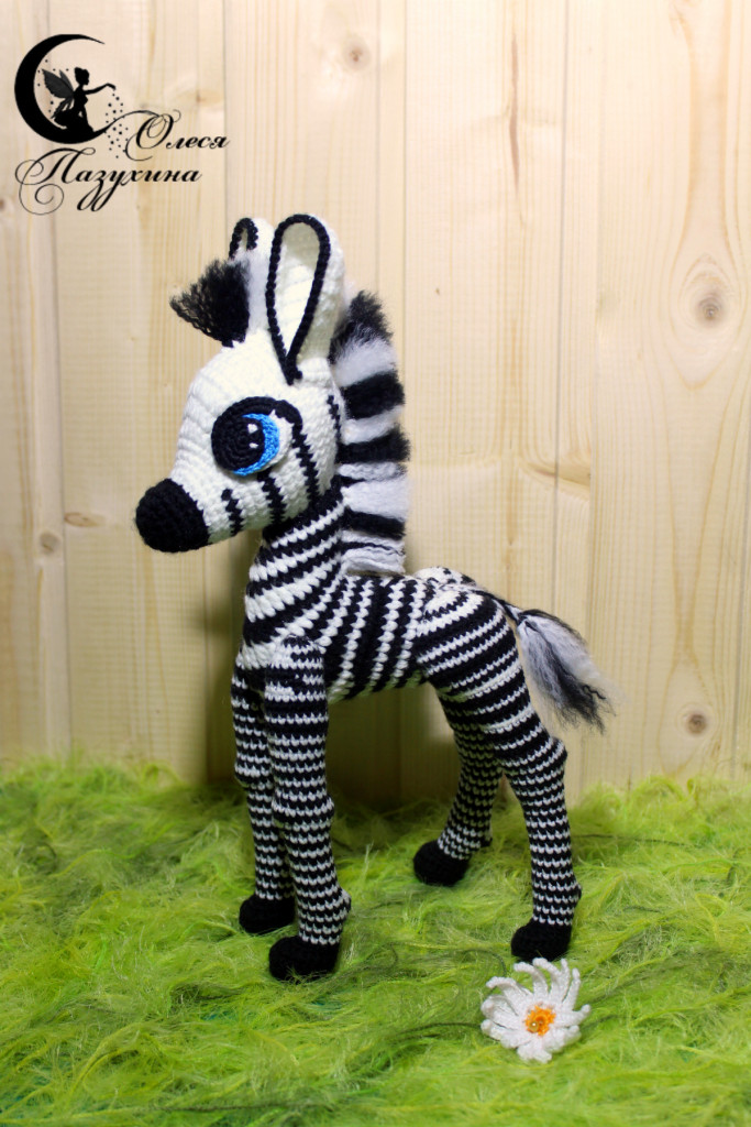 Маленькая зеброчка, связана из плюшевой пряжи, высота 15 см.