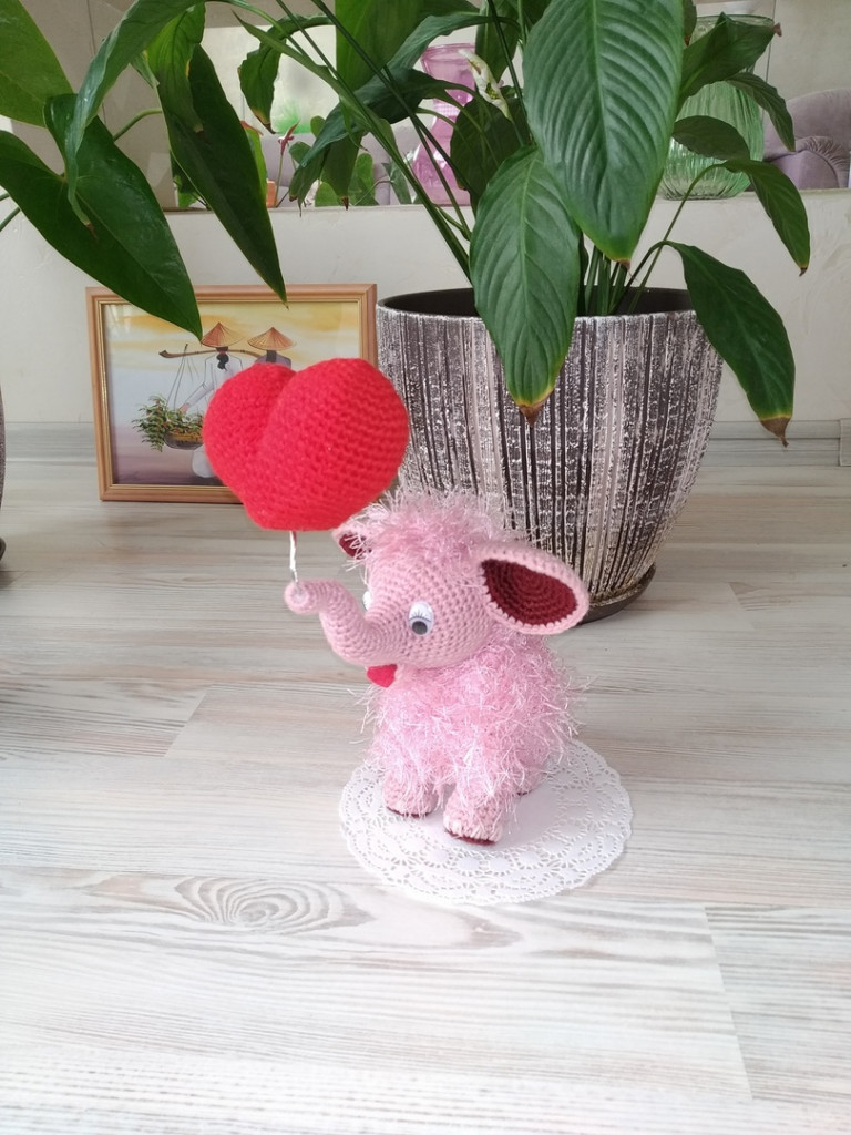 В детстве все мы с родителями ходили в цирк и зоопарк. Там самые большие животные живут это слоны. Вот и я решила разнообразить свой животный мир амигуруми и связала цирковых слоников и мамонтенка, который нашел свою маму и подарил ей сердечко!