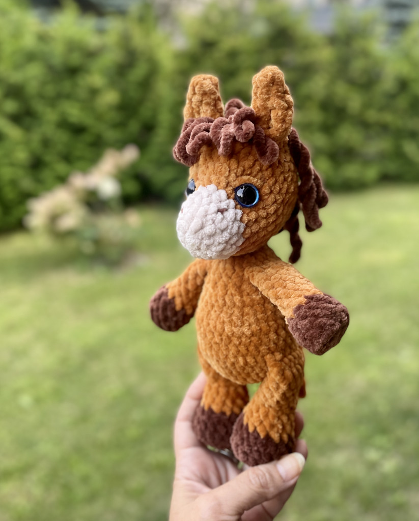 Вот такой получился жираф. Брала бесплатный мк, изменила пряжу
