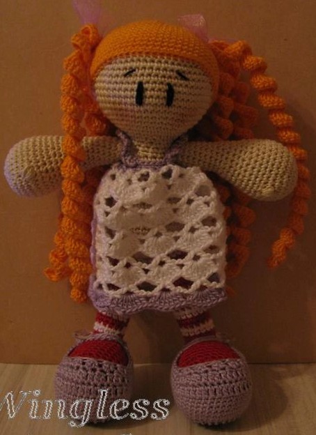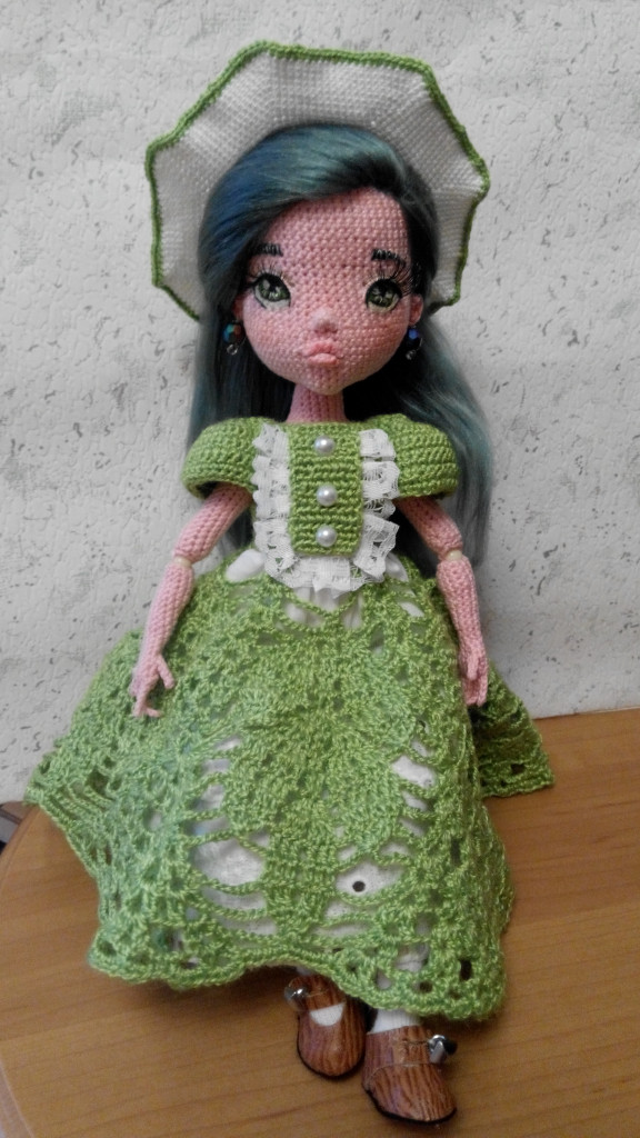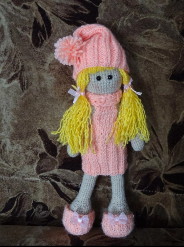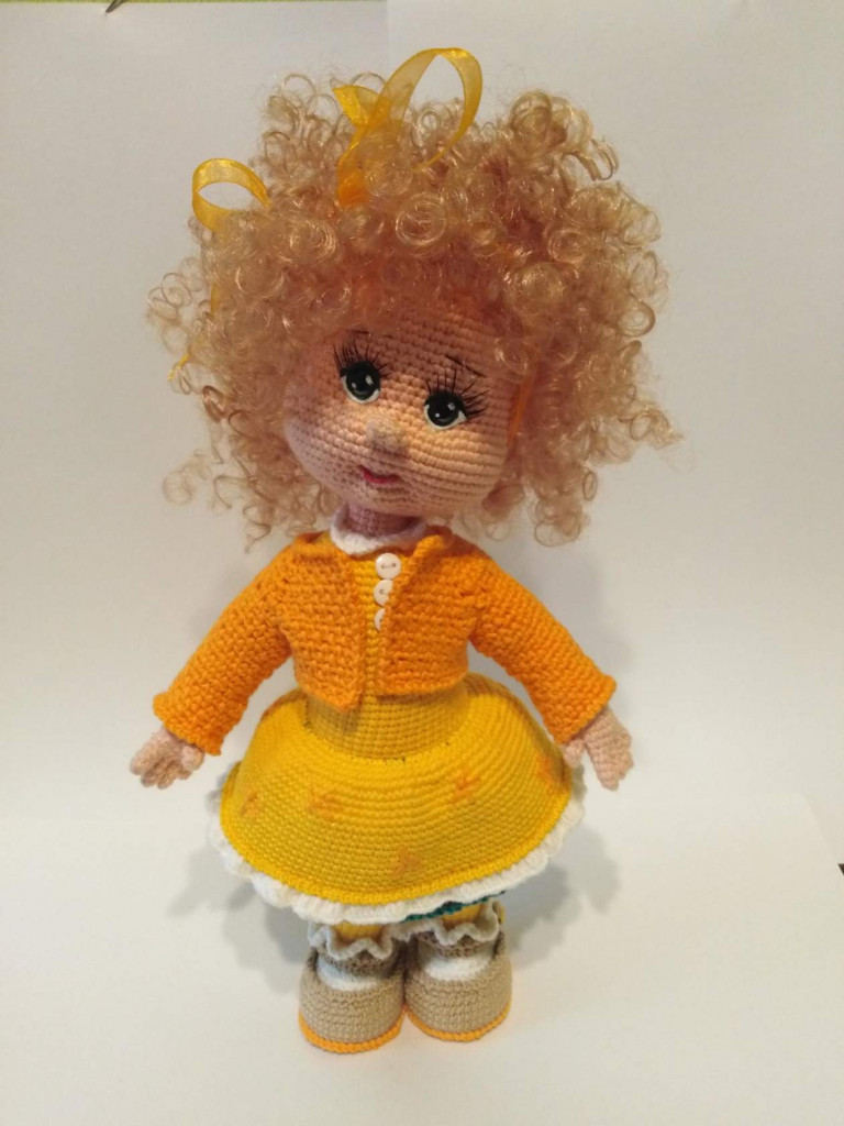 Связана по мк Леси Медведевой, рост 26 см, нить филодискозия N5, кр 1, шарнирная, голова поворотная, волосы акрил