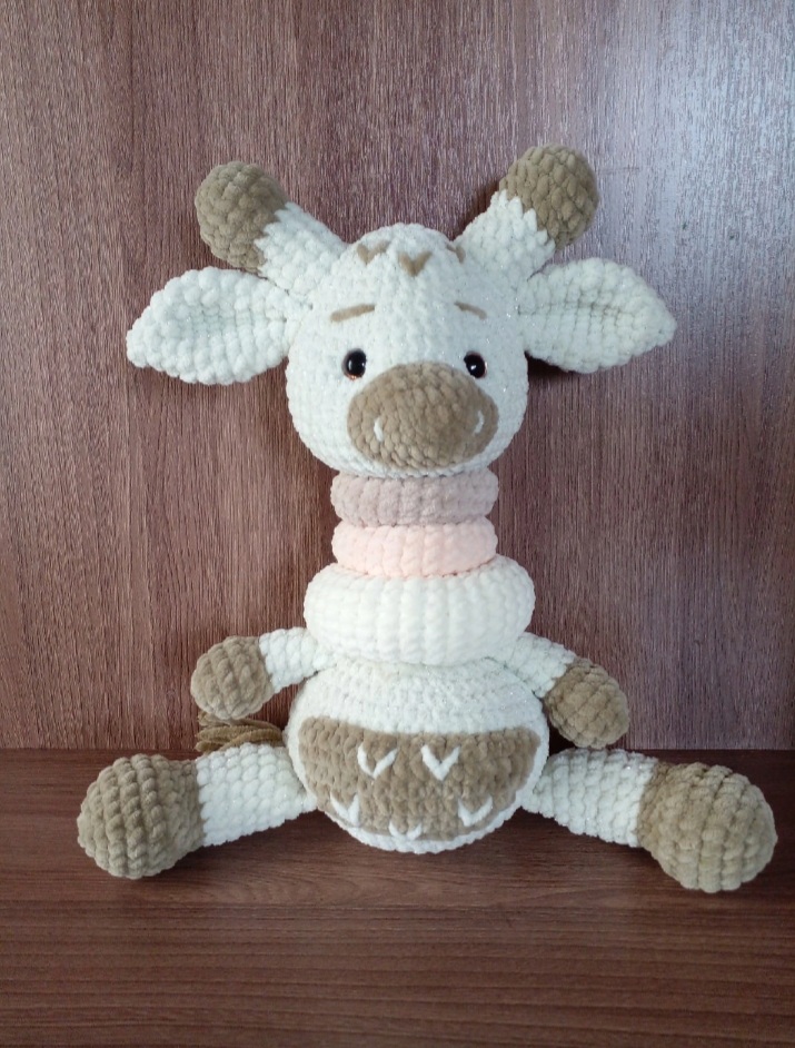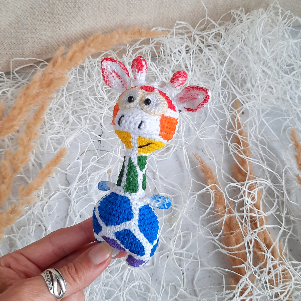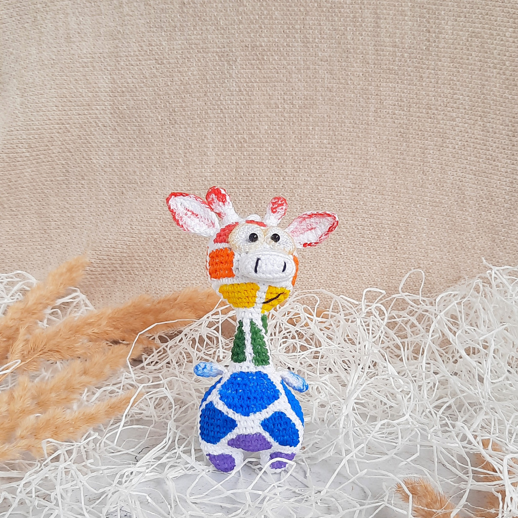 Жирафик. Связан из мулине. Рост 4 см. Пятнышки акрил. 😊