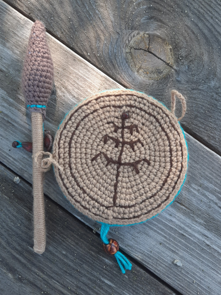 Кукла по МК Елены Кадулиной. Бубен придумала сама :)
