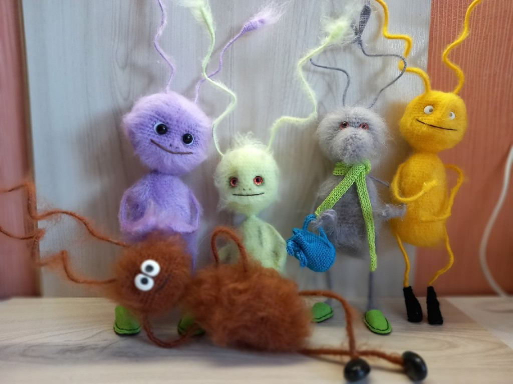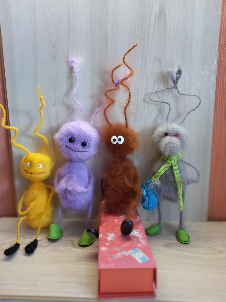 Навязалось) Семейка Лунти (по мк Светланы Комаровой) и Феечный Дримкон. Для себя открыла новый вид фотографирования, решила поэкспериментировать с УФ фонариком, игрушки заиграли новыми красками