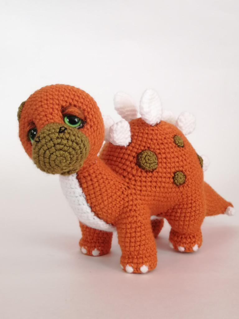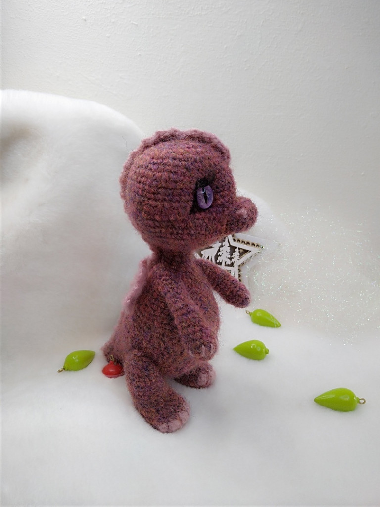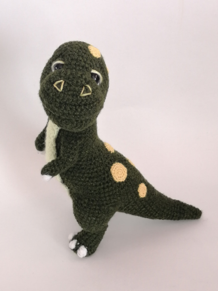 Динозаврики по МК Ольги Цепляевой. Все, кроме Рекса, связаны из Детской новинки, а вот Рекс из неопознанной пряжи крайне красивого цвета чего-то такого типа мха или тёмной листвы, потоньше, чем Новинка, и потому не выглядит большим и стррррашным)