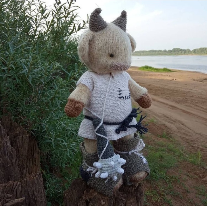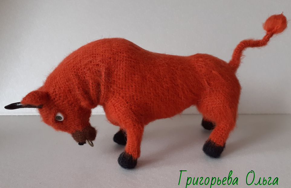 Бык "Гром" связан по мастер классу Наташи Загребиной.