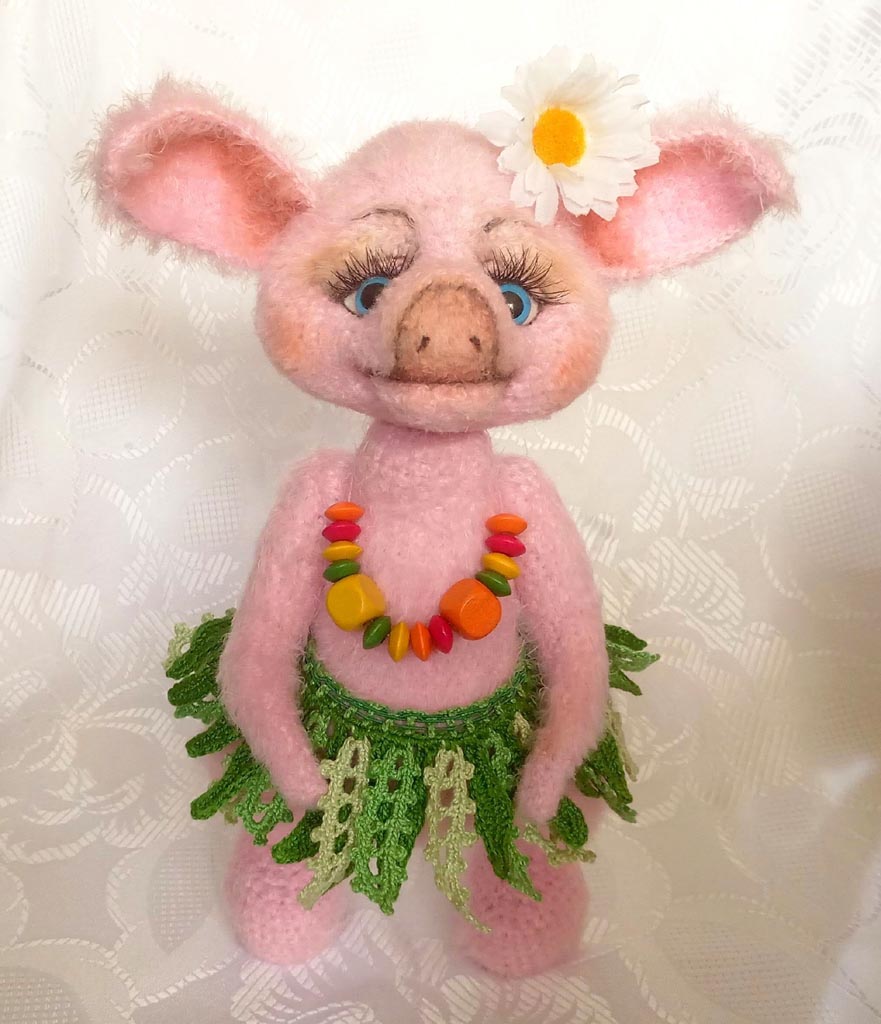 Хрюшка, связана крючком, по описанию Марии Боровой