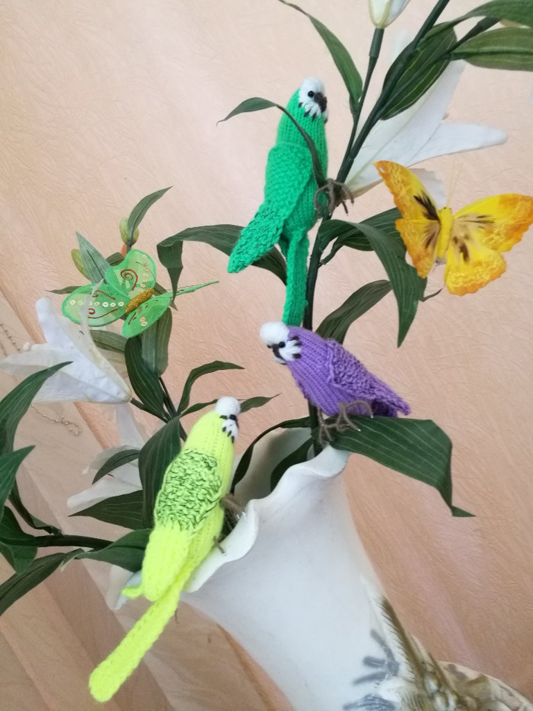 Волнистые попугайчики спицами
