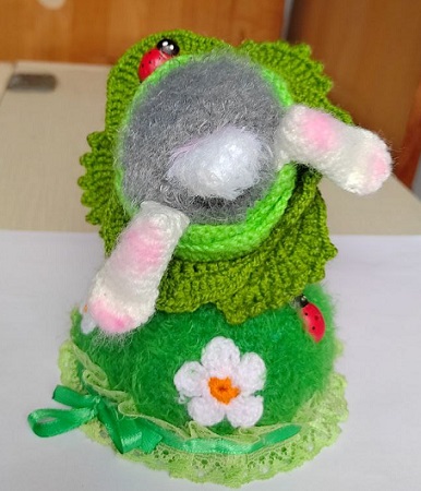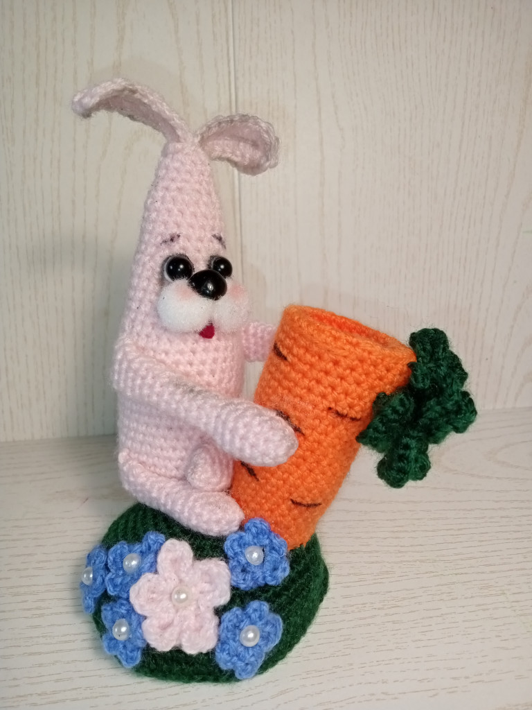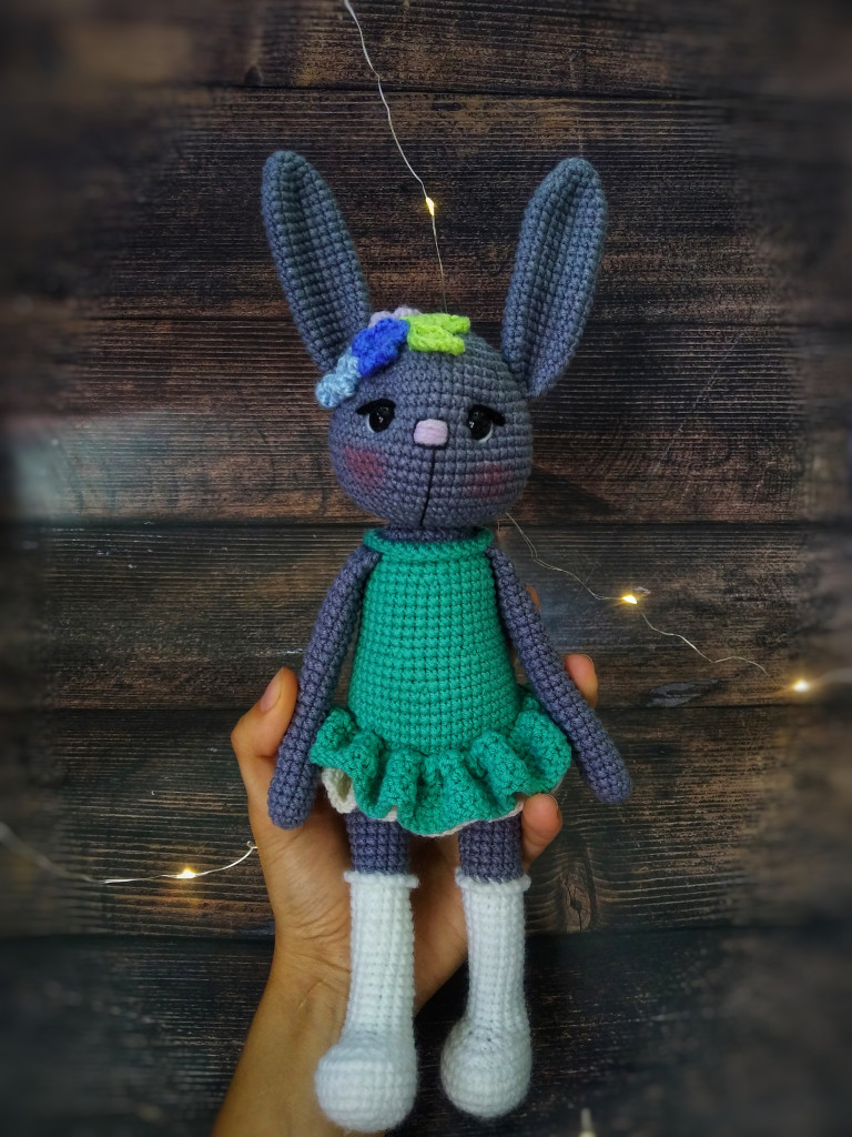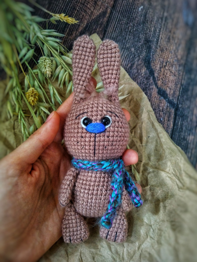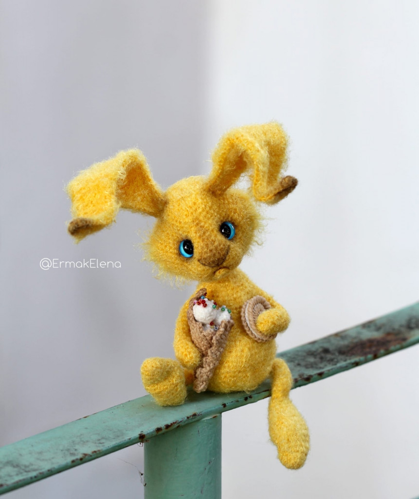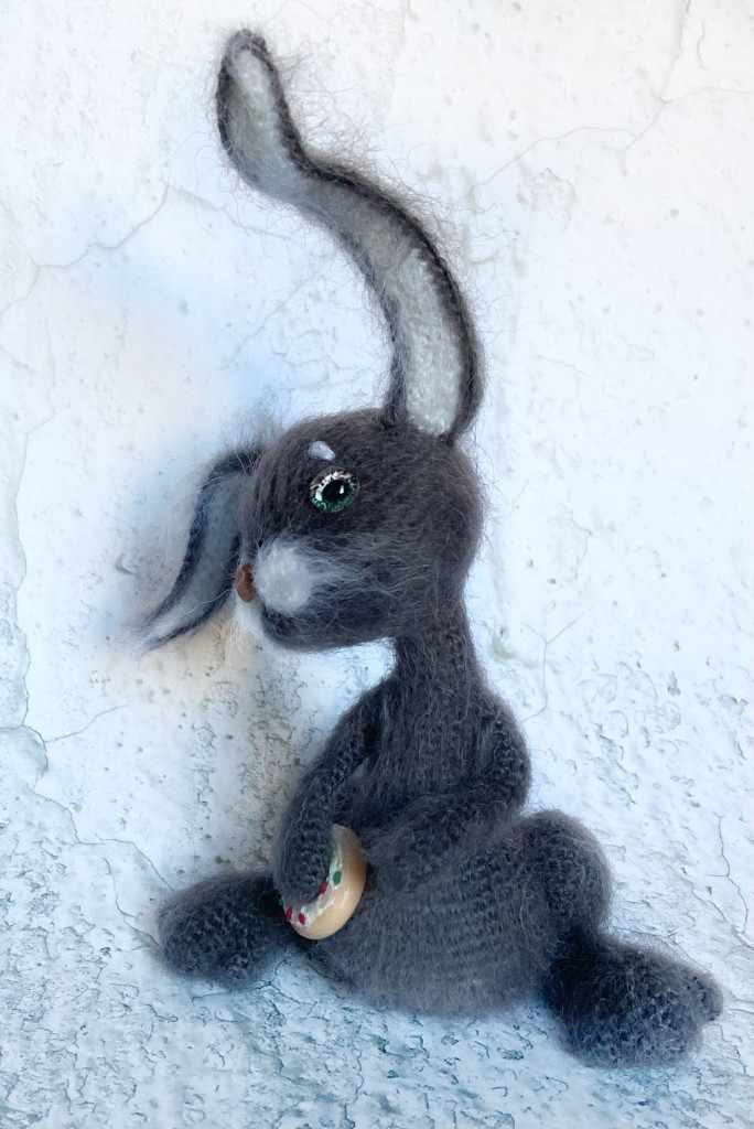 Вот, увидев обьявление о старте заячьего конкурса, решила - не пропущу. А так как зайцев в этом году уже видимо-невидимо, захотела связать нетипичного ушастика.