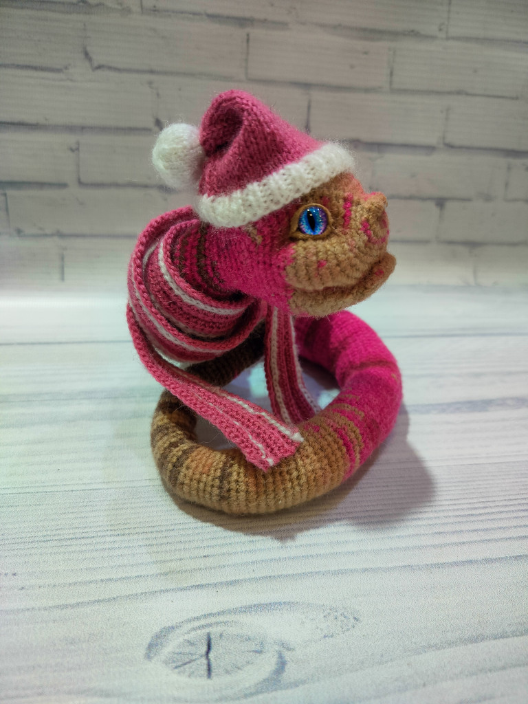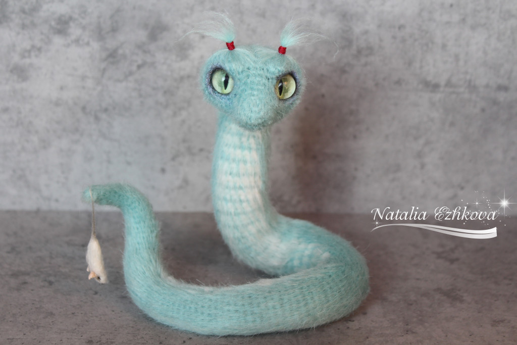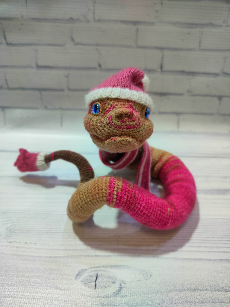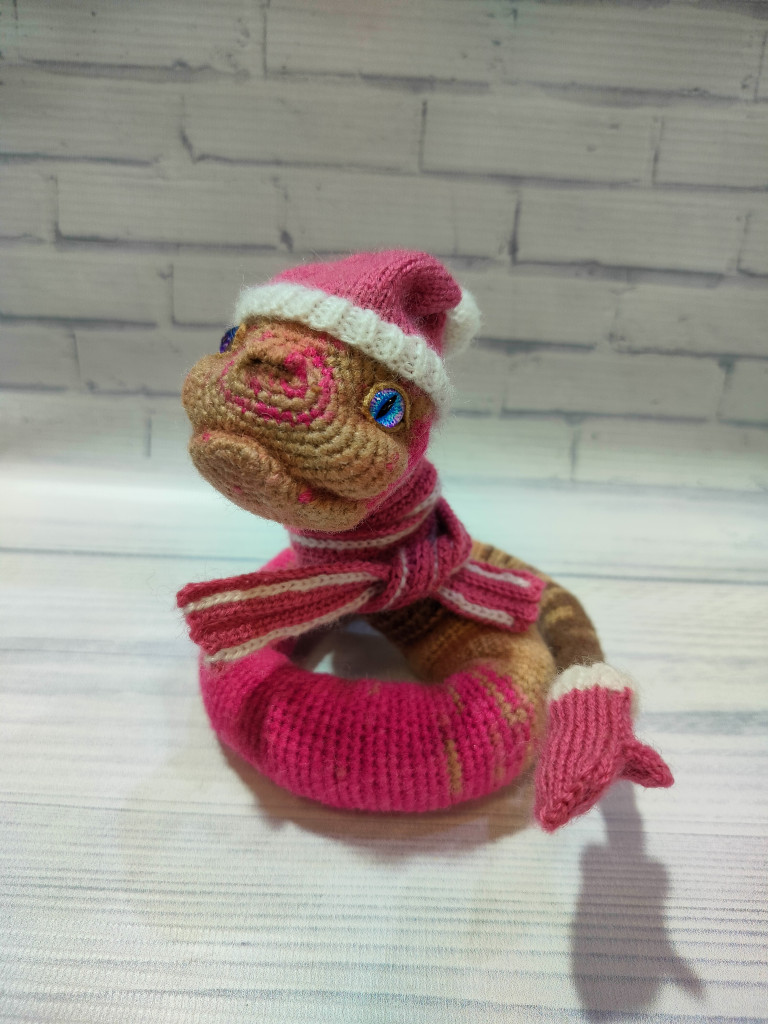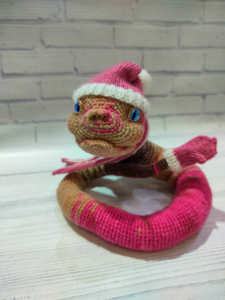 В рамках подготовки мк "Змеиная принцесска", связалась змеючка и секционной пряжи Ализе ангора голд батик, а чтоб зимой у нас не замёрзла бедолажка, связала ей одежки намного)))