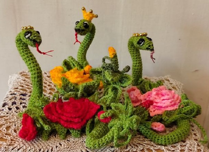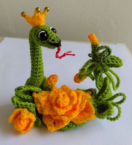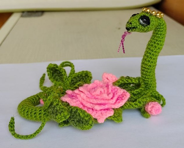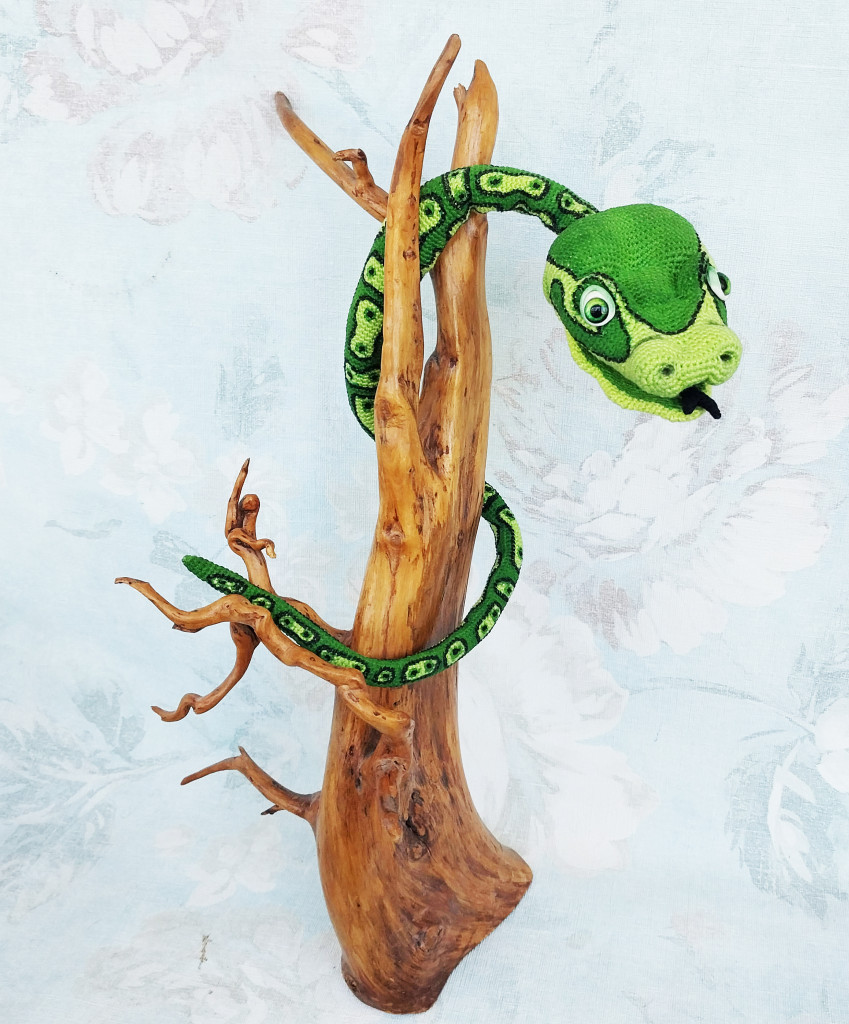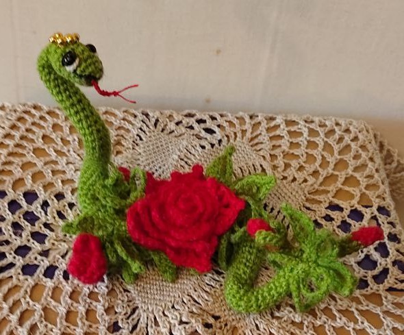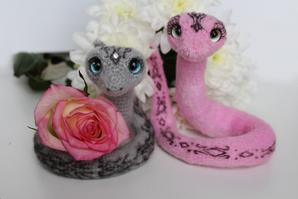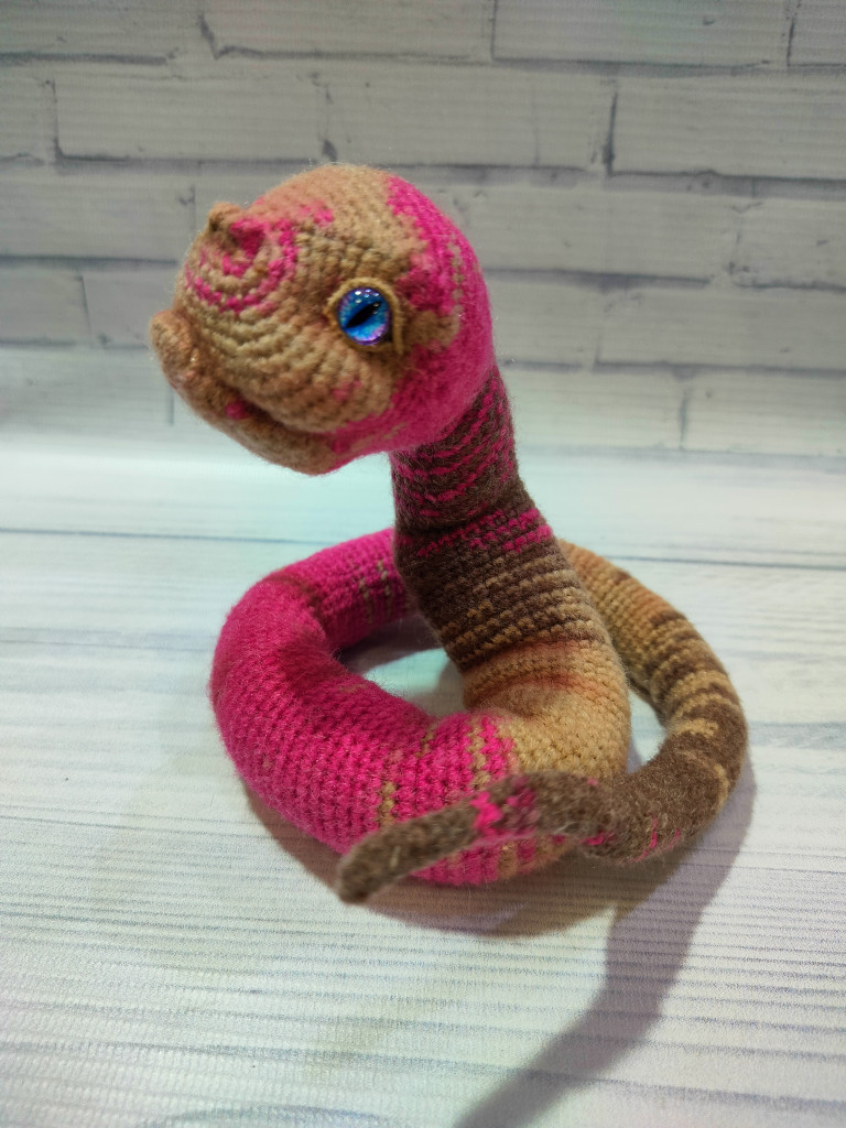 В рамках подготовки мк "Змеиная принцесска", связалась змеючка и секционной пряжи Ализе ангора голд батик, а чтоб зимой у нас не замёрзла бедолажка, связала ей одежки намного)))