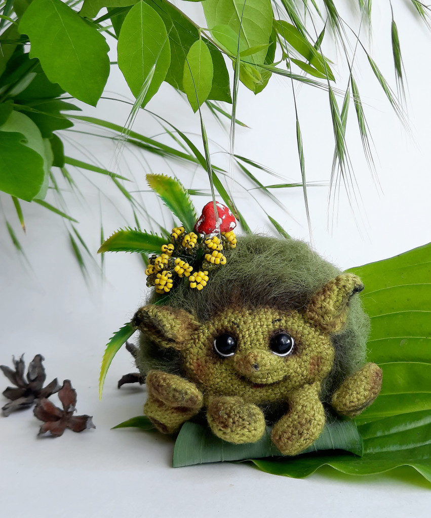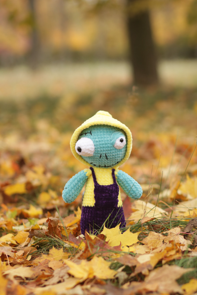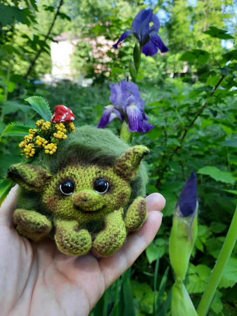 А ещё у меня 2 сына и игрушки они хотят иногда не стандартные))) Хаги Ваги - первый опыт вязания из травки, оооочень трудно вязать, особенно темным цветом. А зомбик связался на одном дыхании