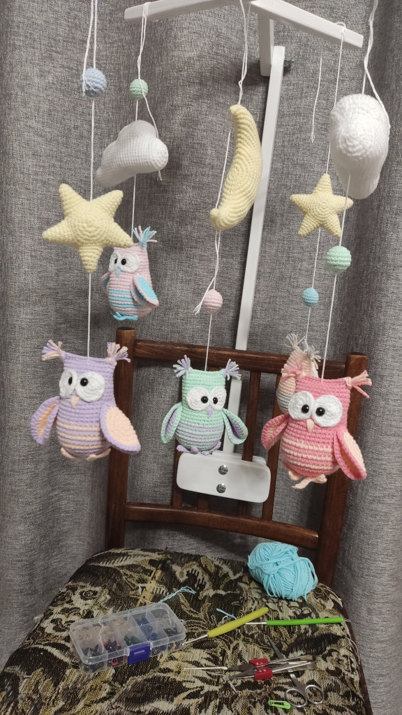 А ещё с помощью мужа делаю детские музыкальные мобили на кроватку