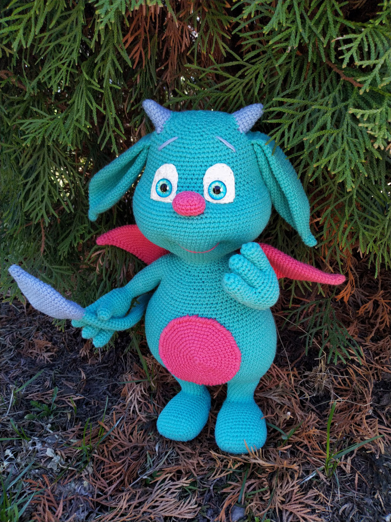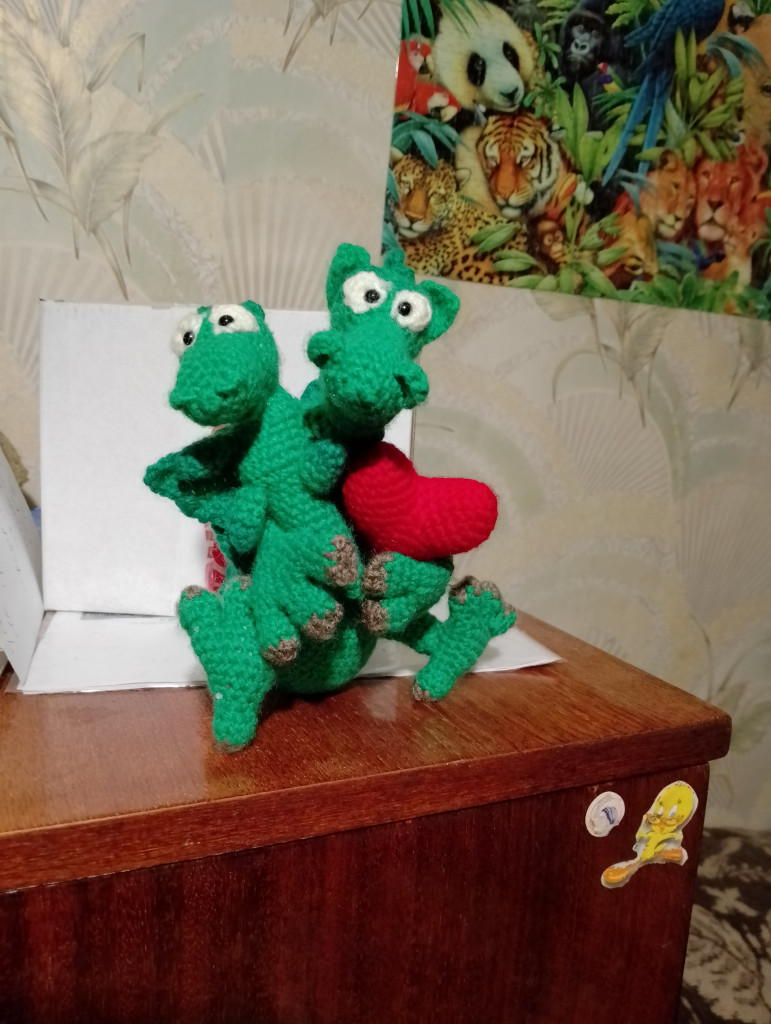 А вот с этого дракона началась моя любовь к вязанию крючком. Не все сразу получилось - голова не совпала с телом по плотности вязания