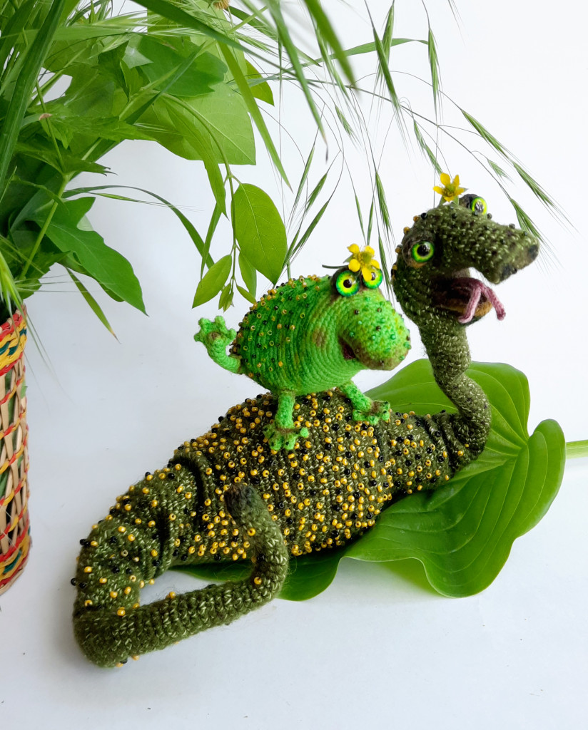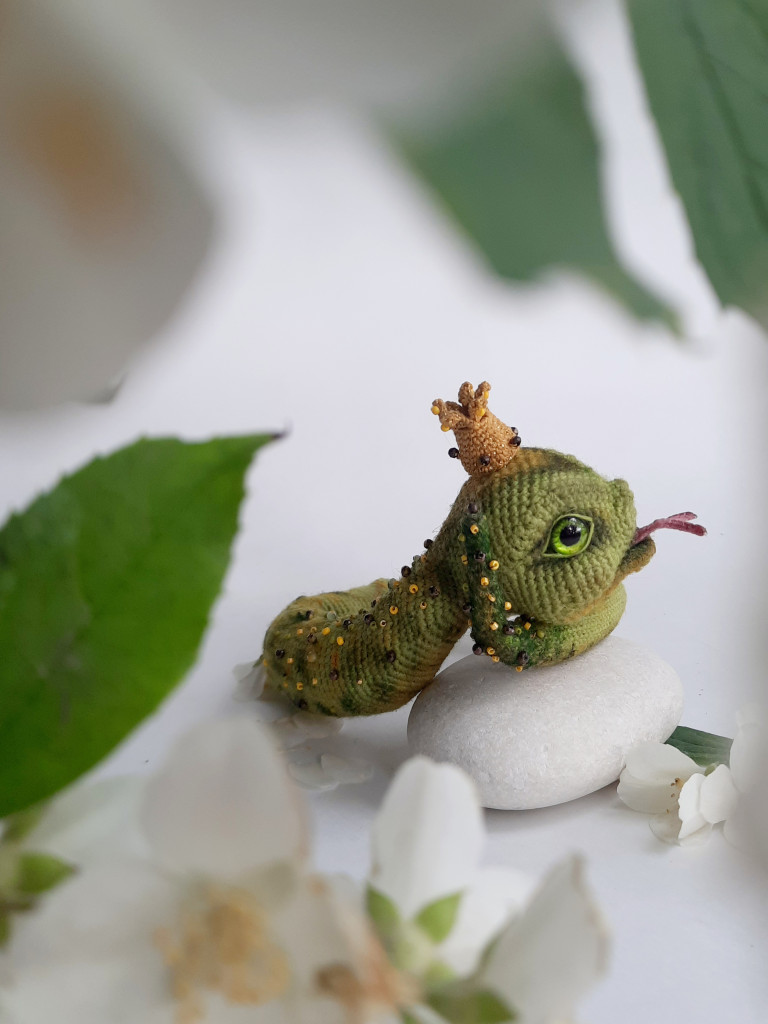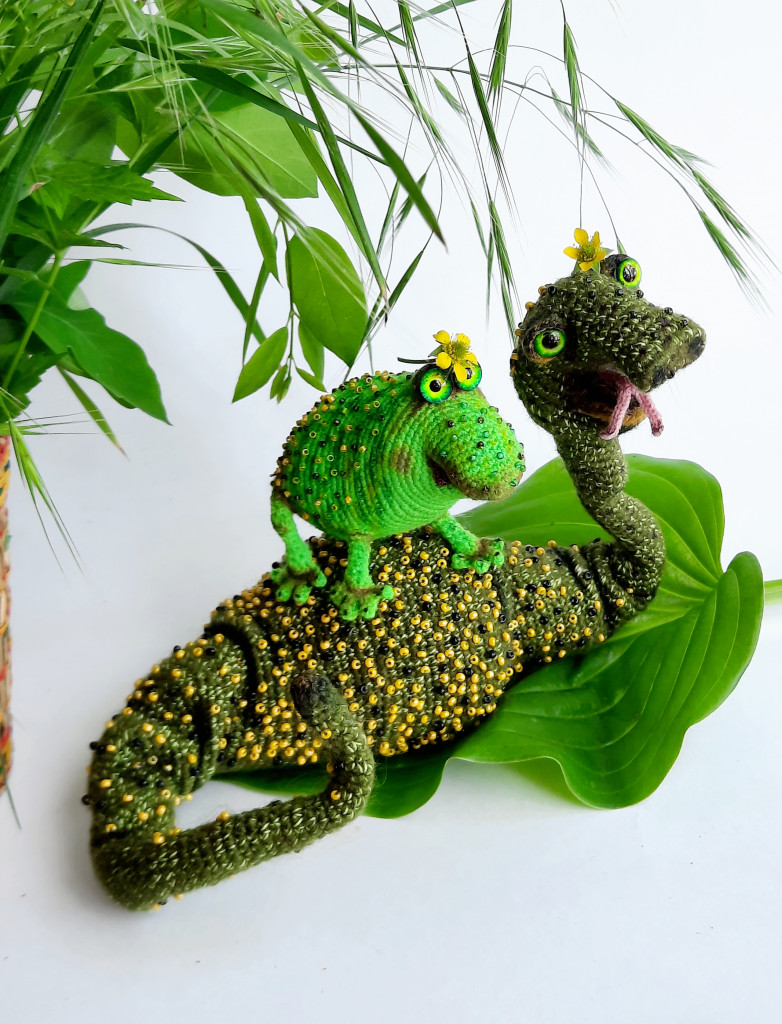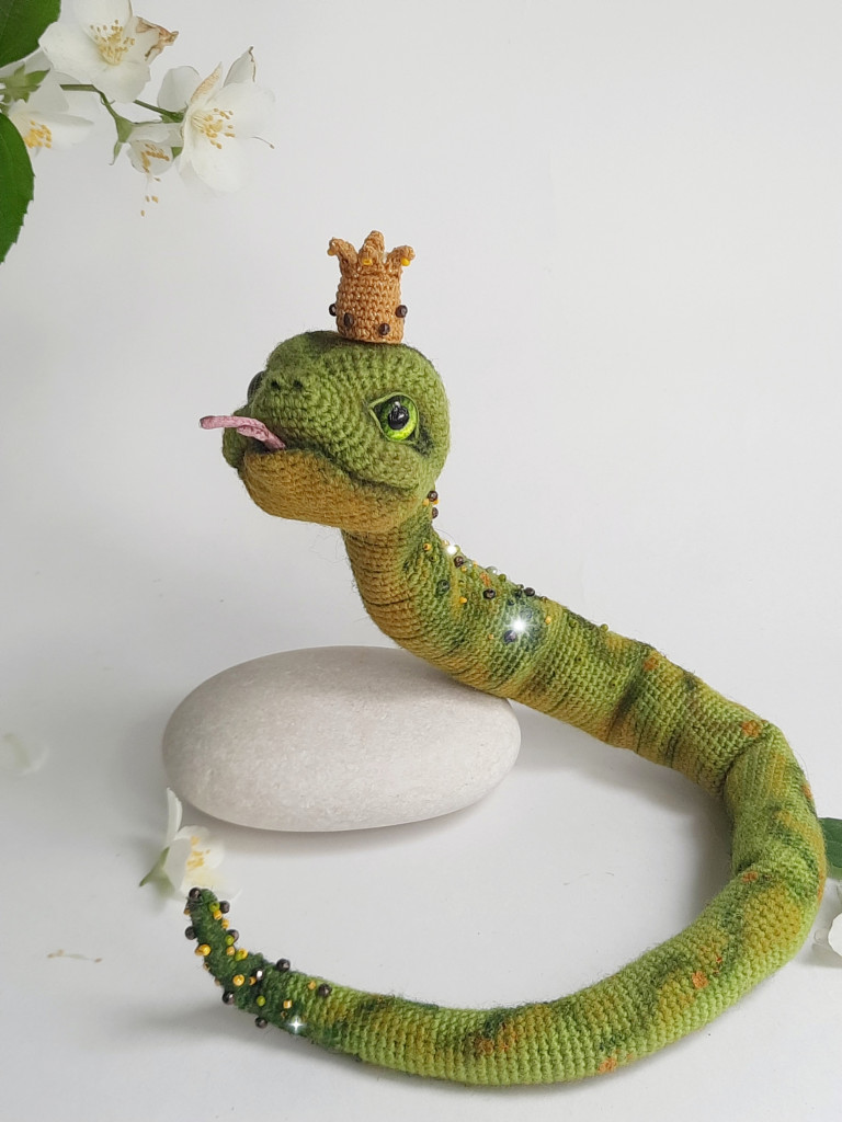 Использована пряжа Lana Lux 800 Himalaya в 2 нити. Длинна змейки 41 см. Тонировка - акрил. Украшена бисером и стеклянными бусинами. Глаза -стекло 10 мм.