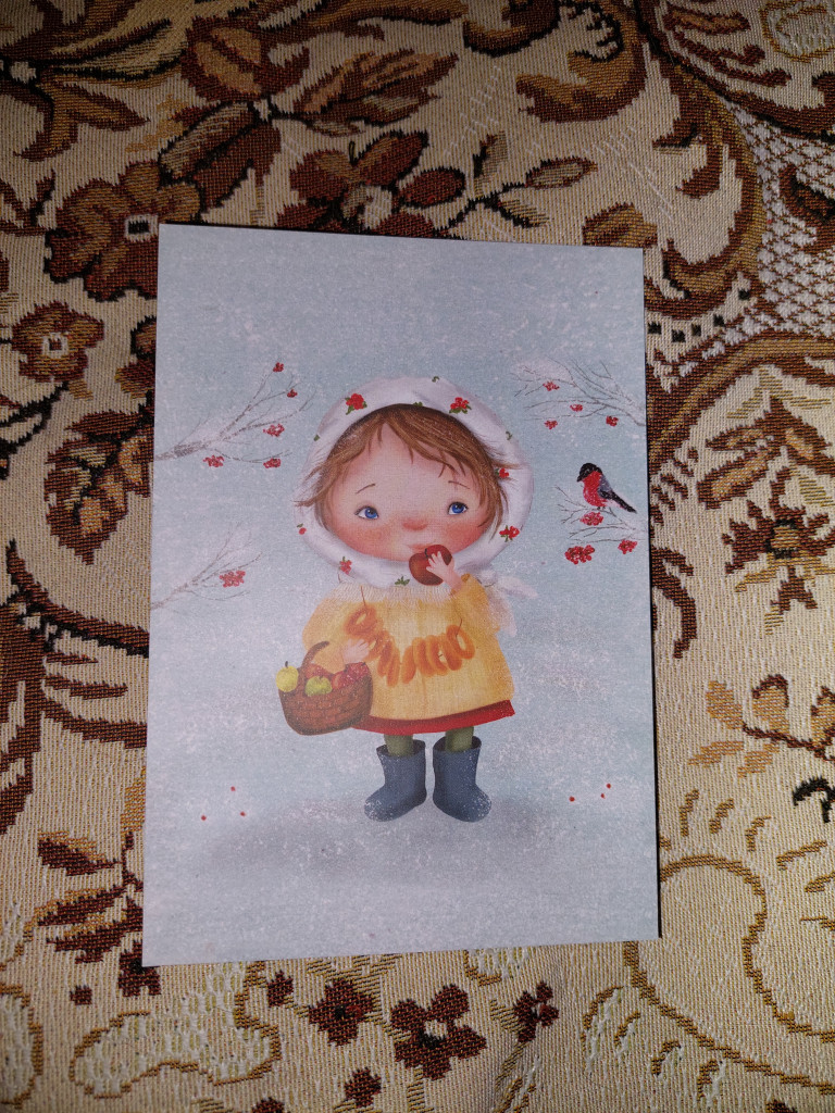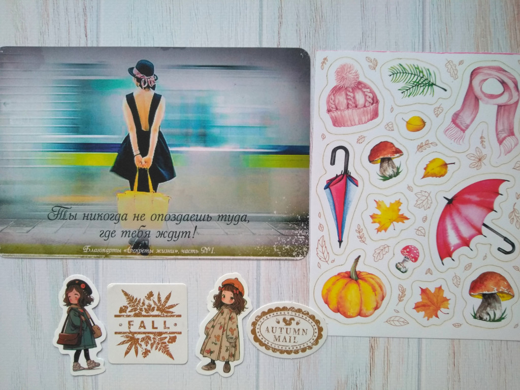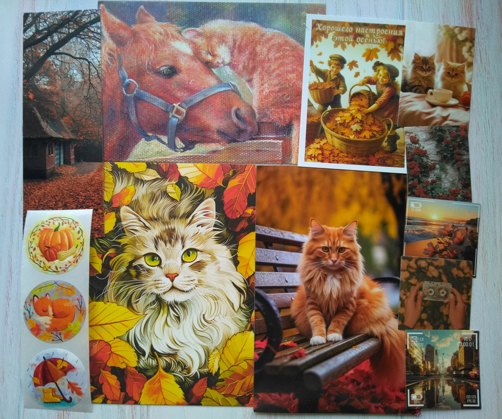 От Жанночки @Анюта8 пришла открытка из игры "Сюрпризный алфавит", П - пушистое чудо, очаровательный котик. И ещё сюрпризные открыточки, все очень красивые, но вот девочка с котиком попала в самое сердце. Вспомнила , как в детстве молоко продавали из фляг, и все приходили с бидончиками или 3-литровыми банками. Самое вкусное молоко было)) От Наташи @totoshka пришёл пухленький конверт по осеннему обмену. А в нём столько красоты