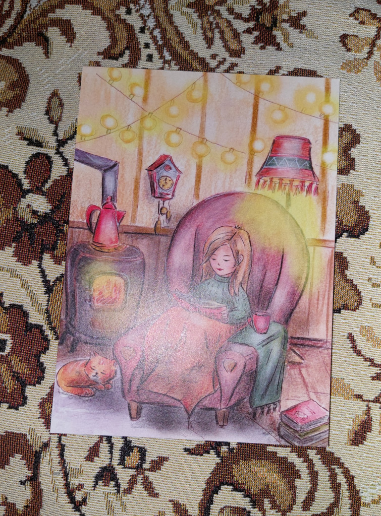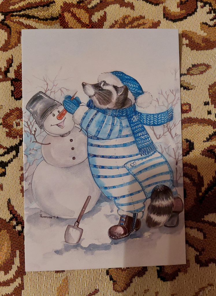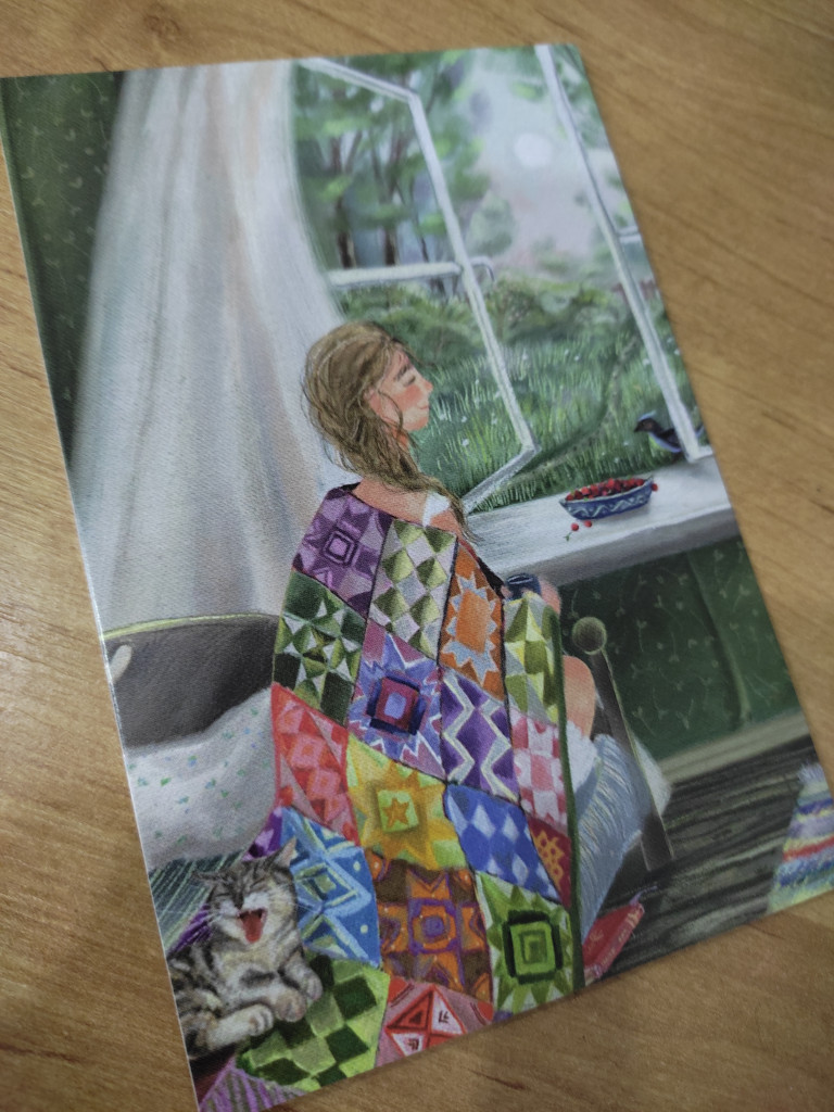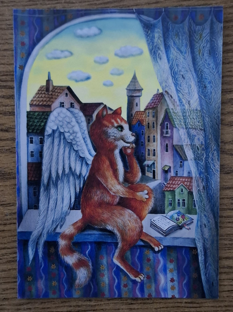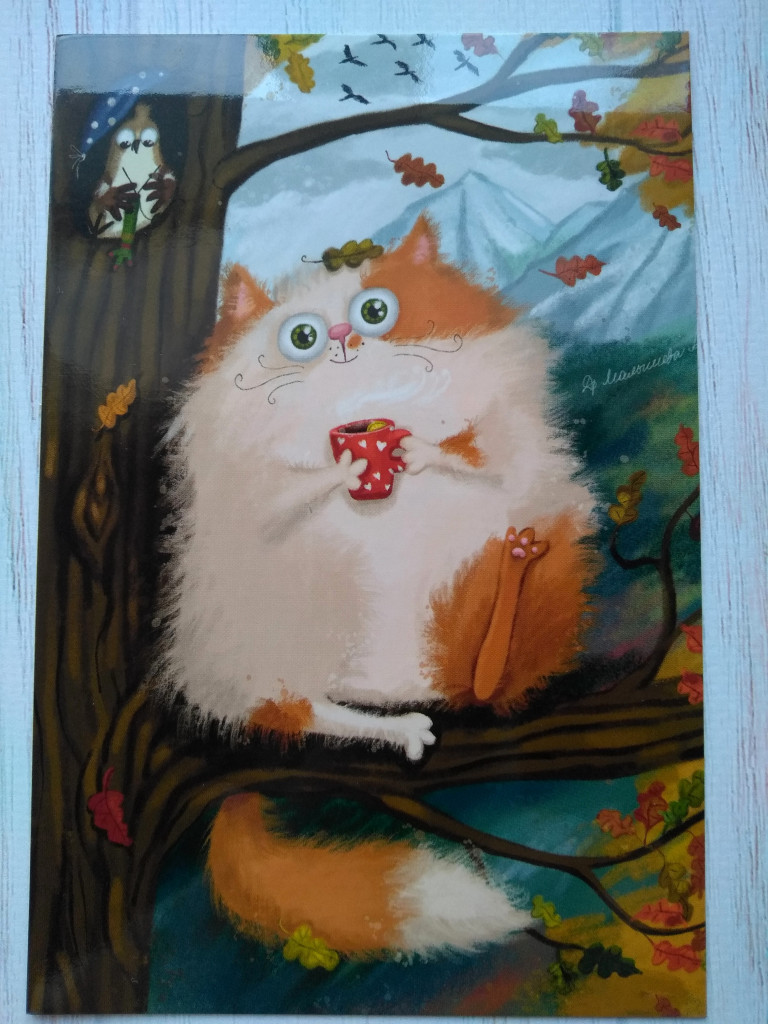 От Оленьки @lelyoka72 пришла открытка из игры Д - девушка и сюрпризная осенняя открыточка. Оля, как ты угадала, мне очень нравятся открытки Анастасии Малышевой. Котик невозможно милый, а какой птиц прикольный сидит в дупле и вяжет носок))