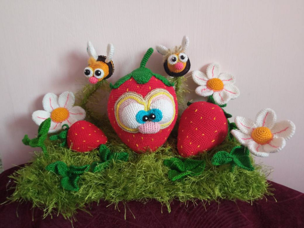 Забыла показать еще один свой недовязик - ягодная полянка от Mala designs