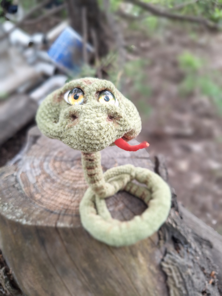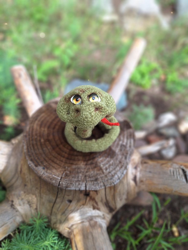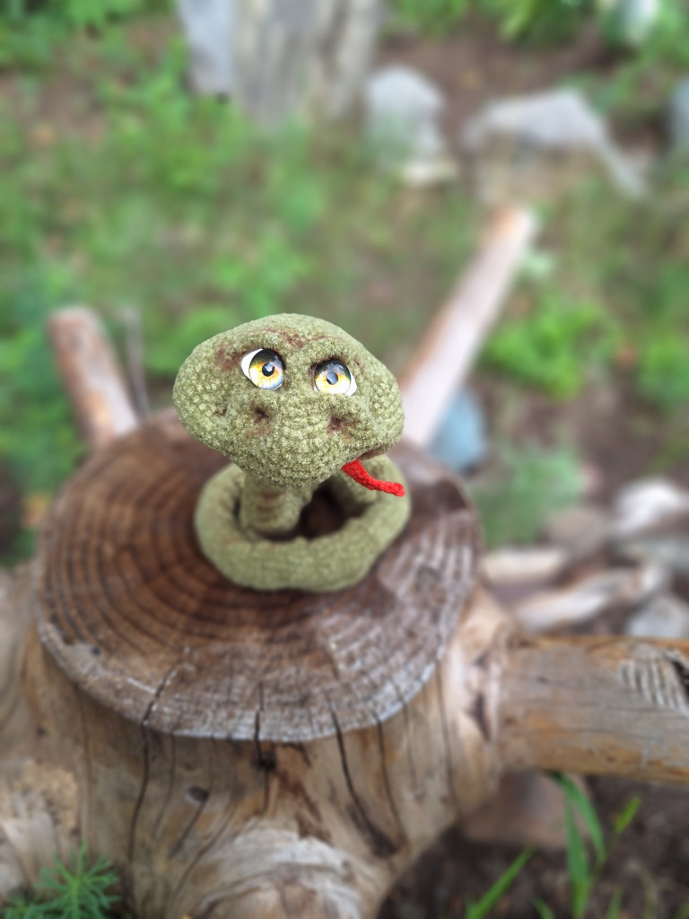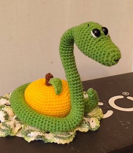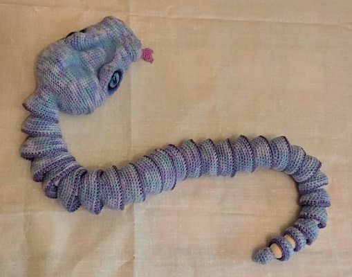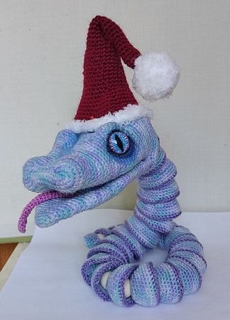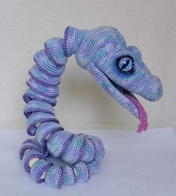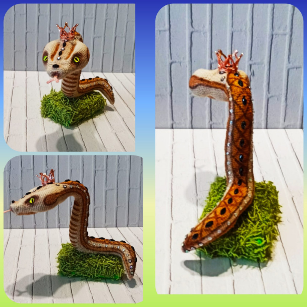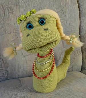 Здравствуйте. Вот такая Змейка-принцесса у меня родилась. Очень понравилось вязать в онлайне, всё доходчиво, и полет фантазии в оформлении широк. Спасибо девочкам Наталье и Екатерине.
