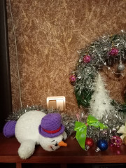А этот малыш получился когда мы с участниками Московском Долголетие учились вязать снеговичка и готовились к Новому Году. МК из интернета.