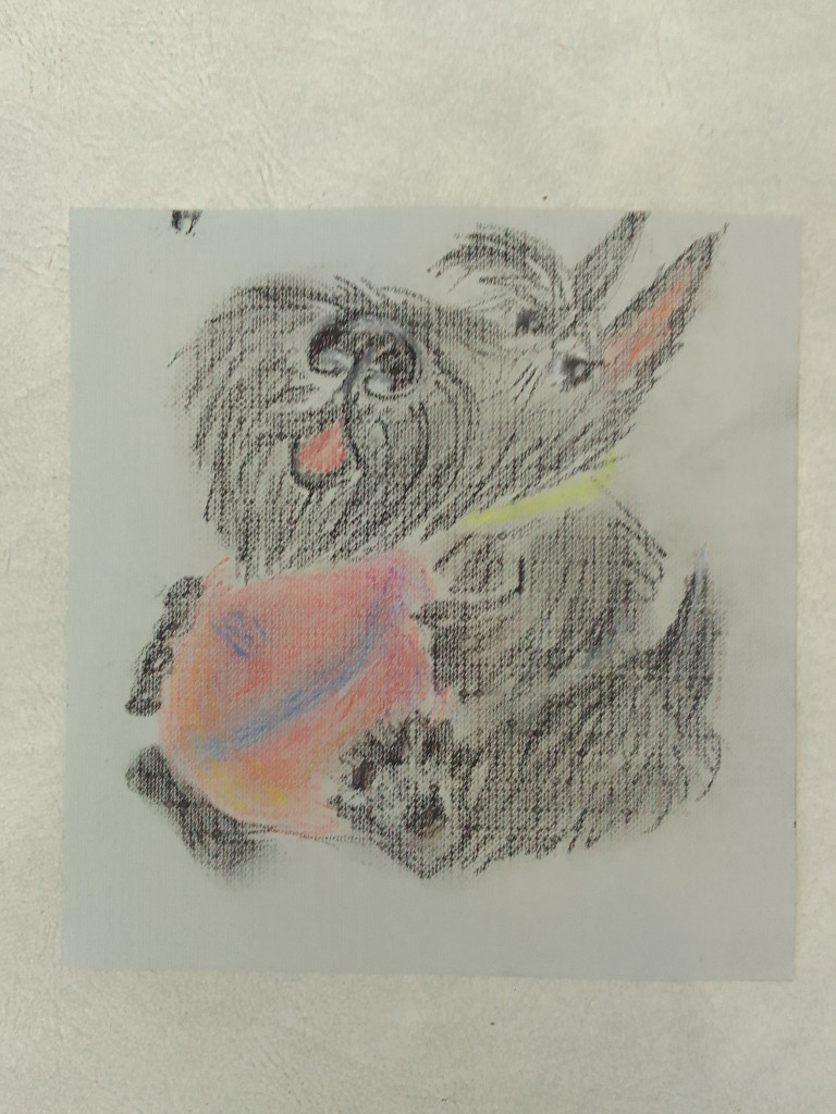 Бумага для пастели, нарисован тоже пастелью. А собачку прилюдно я зову Брюнетом)))