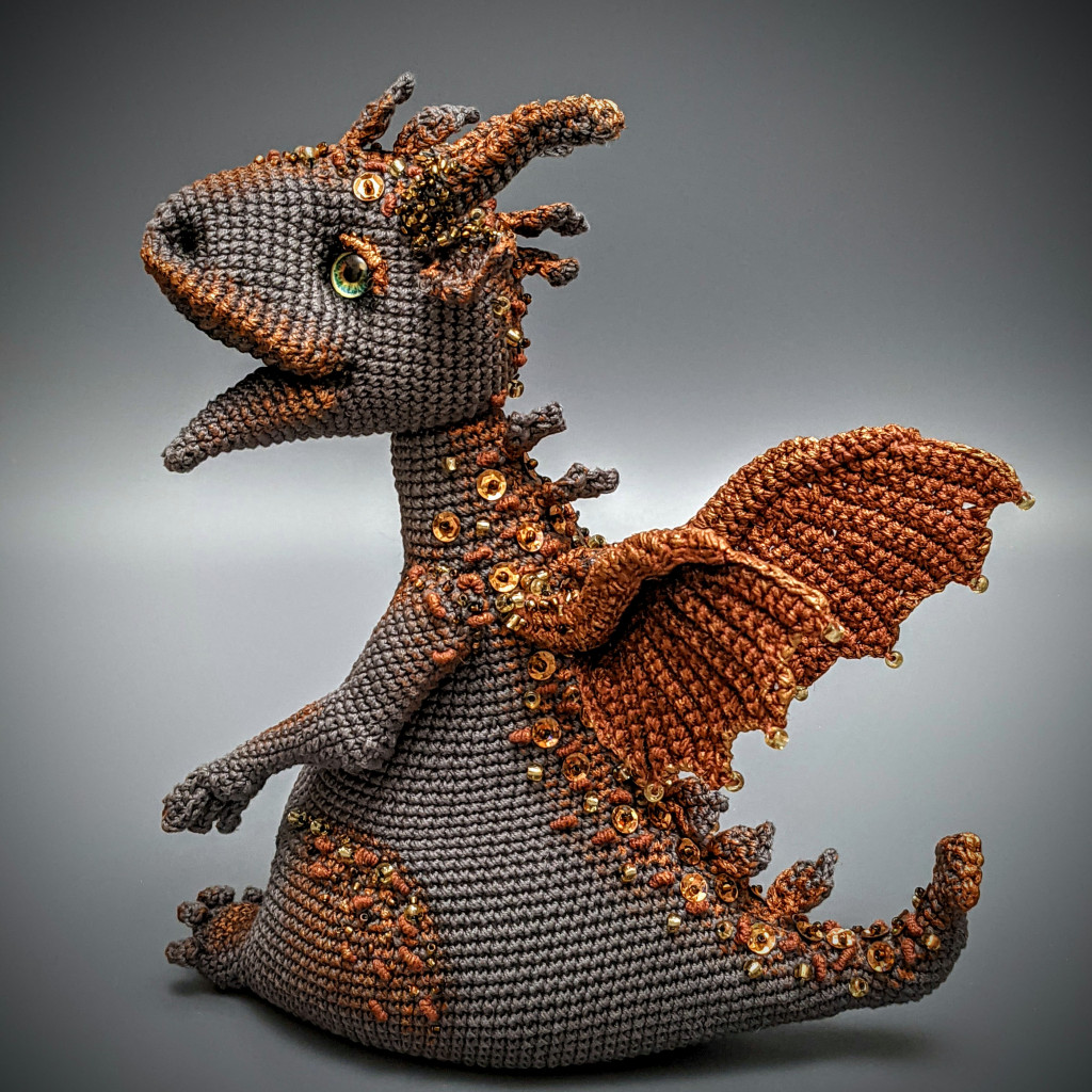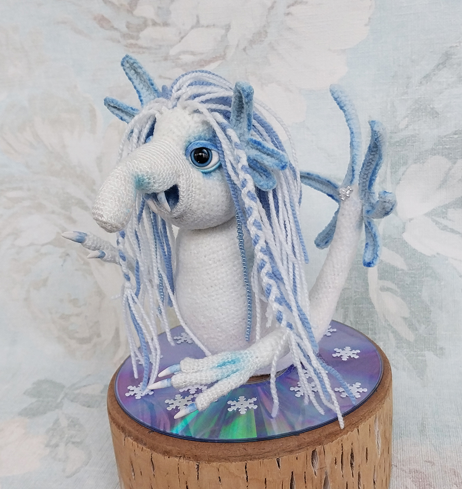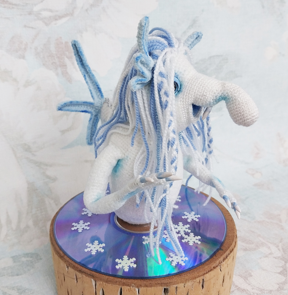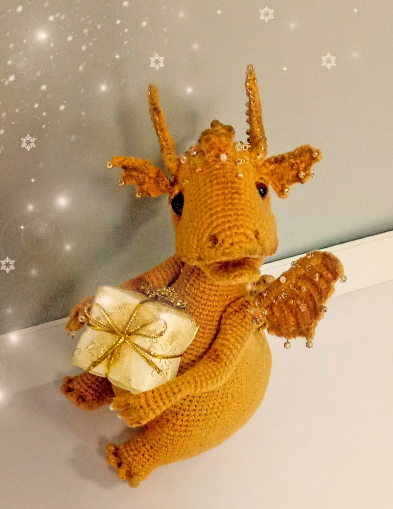 [Златорогий дракон под занавес года. Тест для @Nerpa Наташи. 14 см, крючок кловер1,25, пряжа деленая хобби коттон голд (ализе)