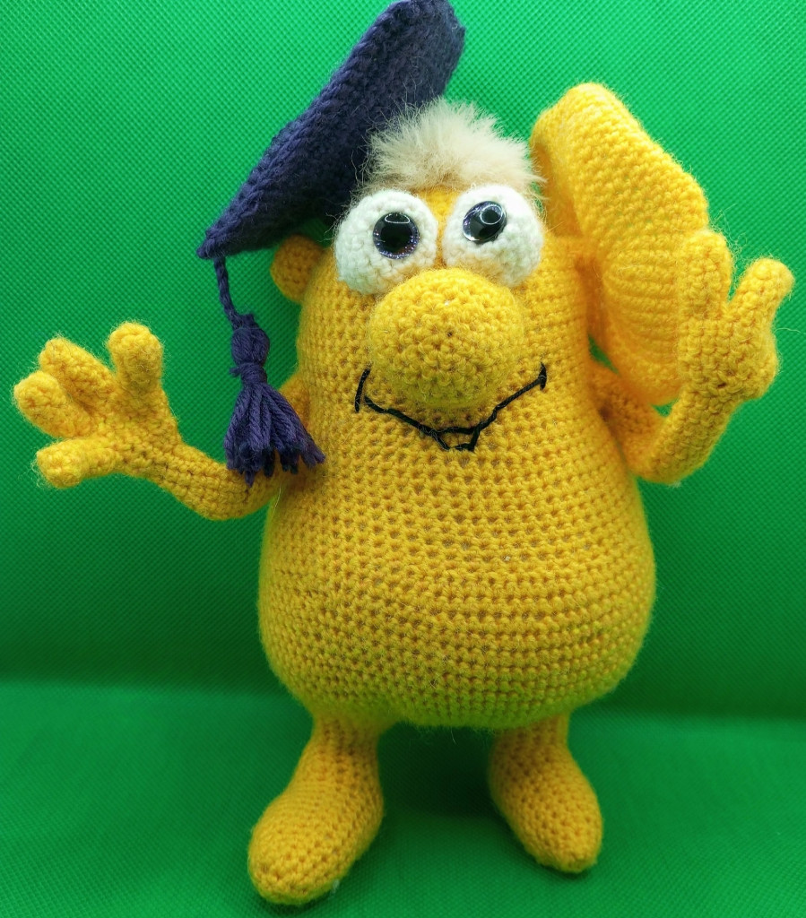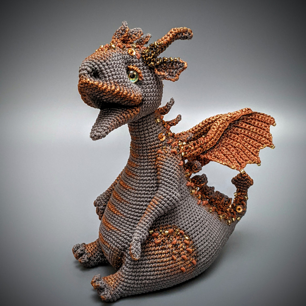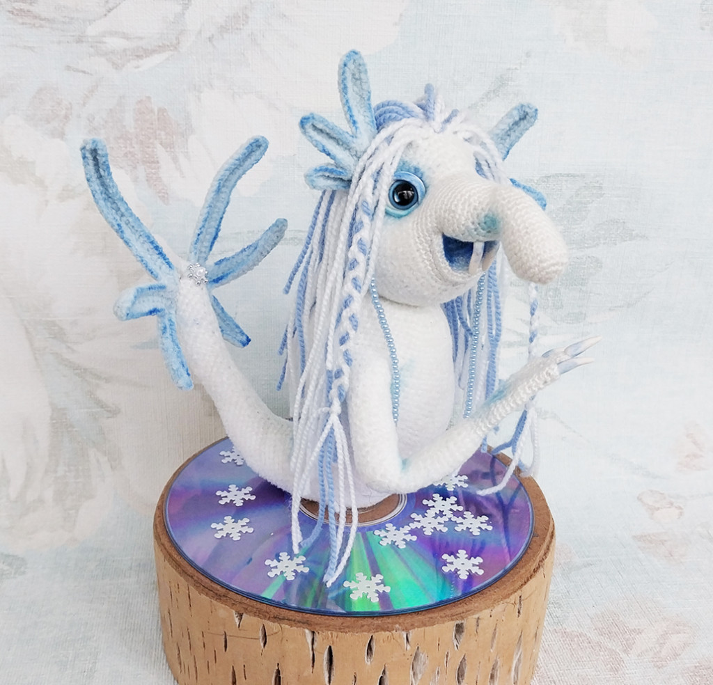 [Златорогий дракон под занавес года. Тест для @Nerpa Наташи. 14 см, крючок кловер1,25, пряжа деленая хобби коттон голд (ализе)