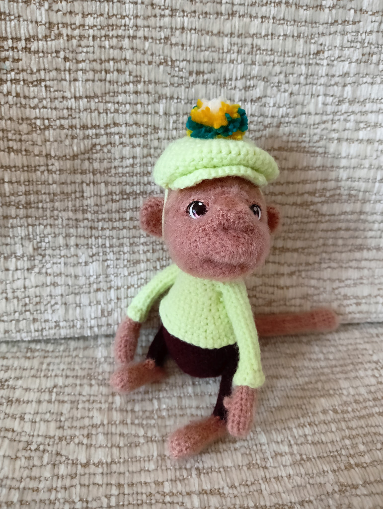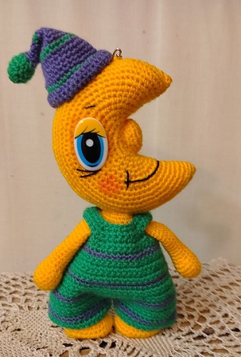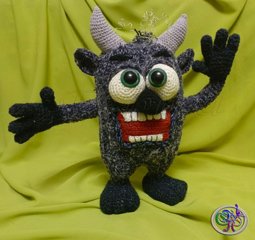 связан из Cotton Soft YarnArt, получился примерно 20 см в высоту с учетом высоты рогов. Только сидит